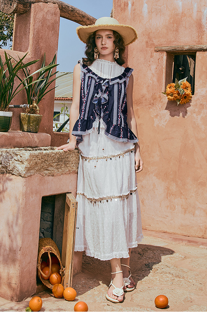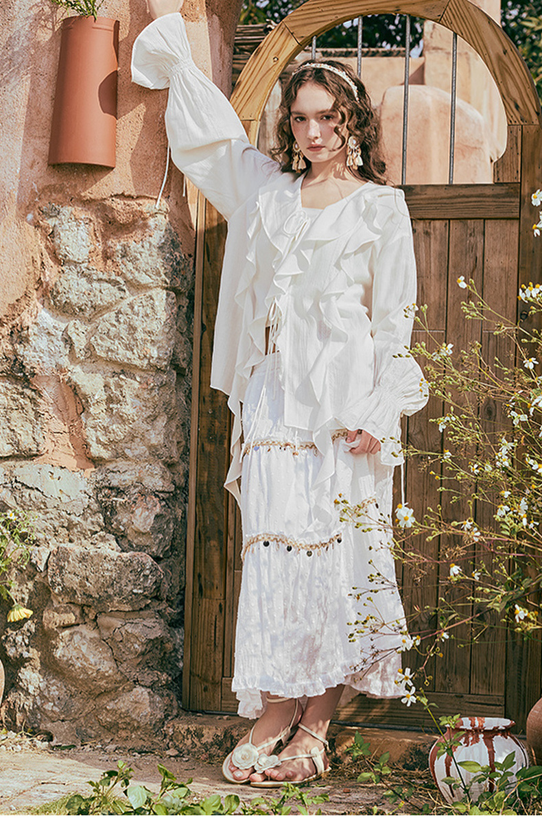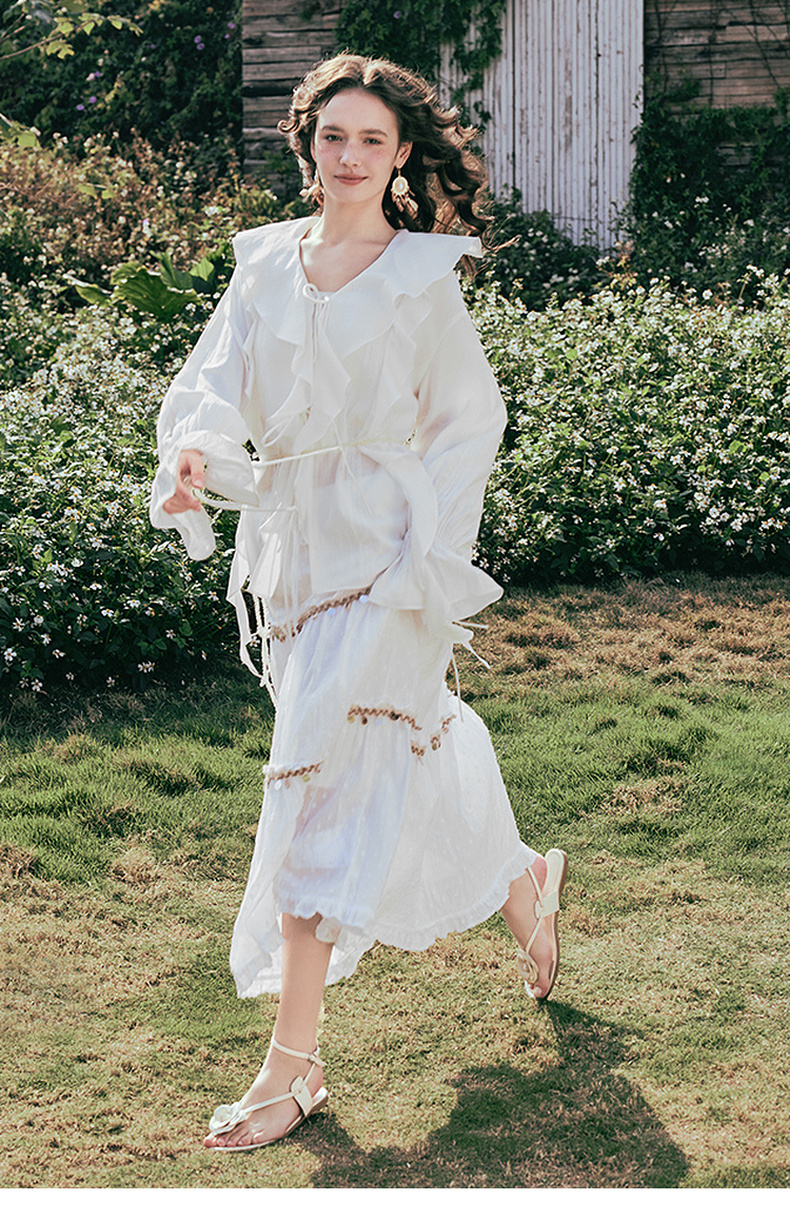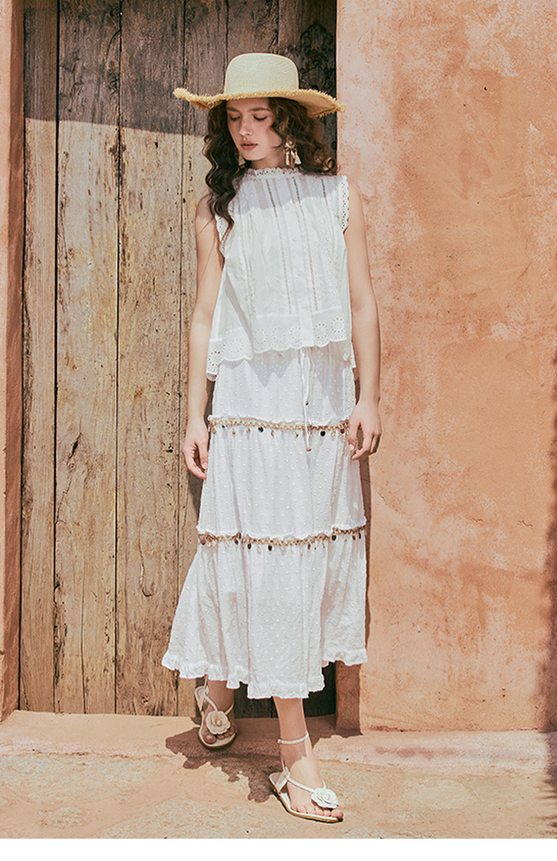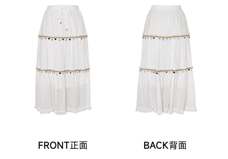 两三事 月汐翩诗 2025夏季新款度假风贝壳装饰蛋糕裙白色半身裙