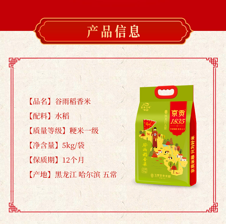 【自营】京贡1835谷雨稻香米5kg真空袋