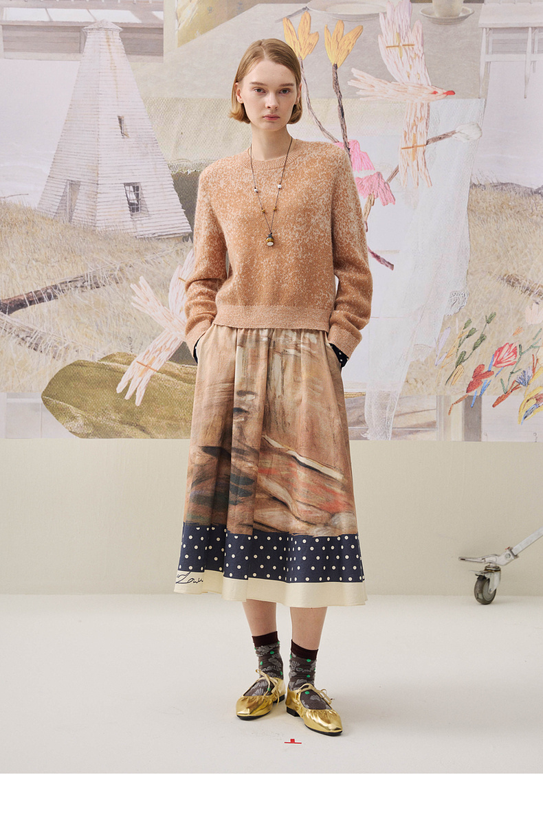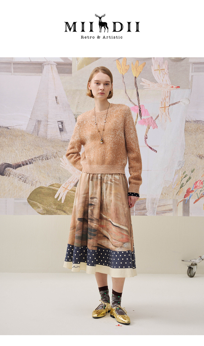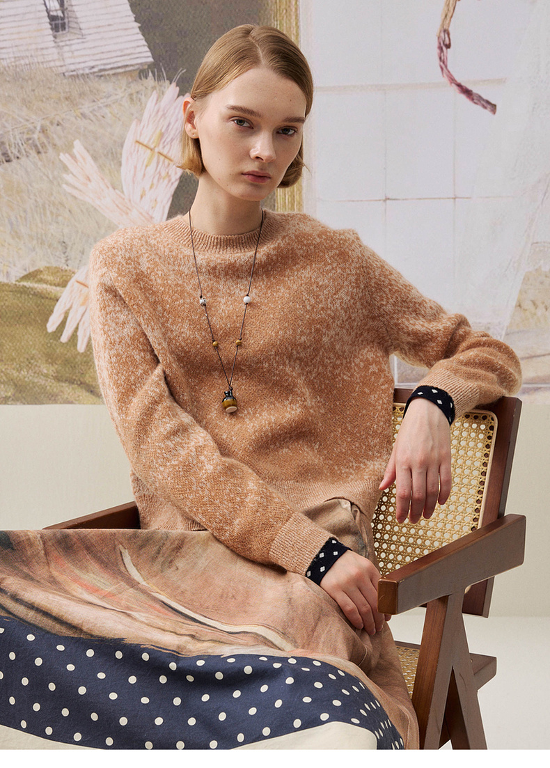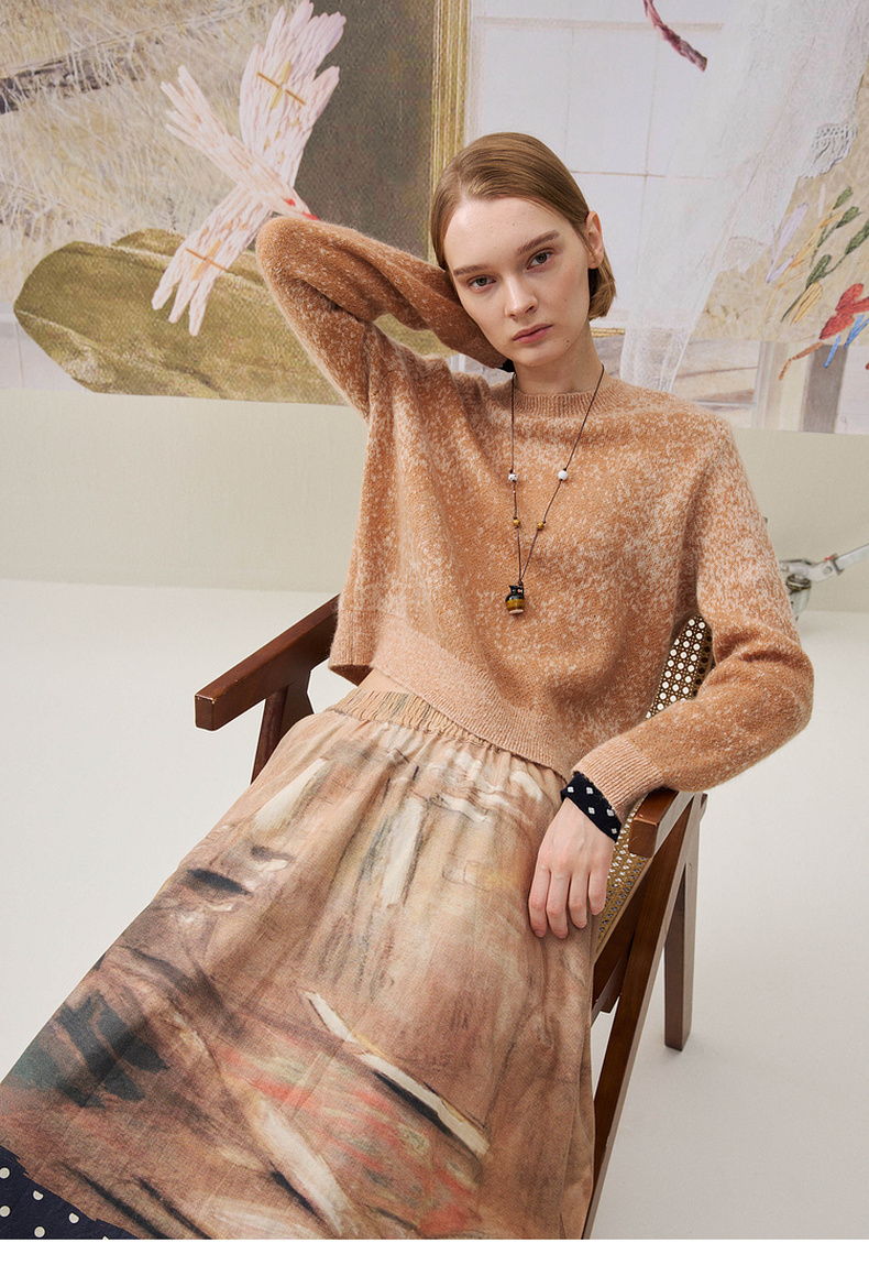 谜底套头针织衫长袖2025年冬季新品宽松慵懒时髦毛衣女254MZ1898