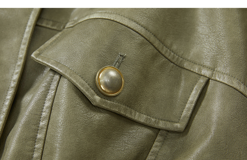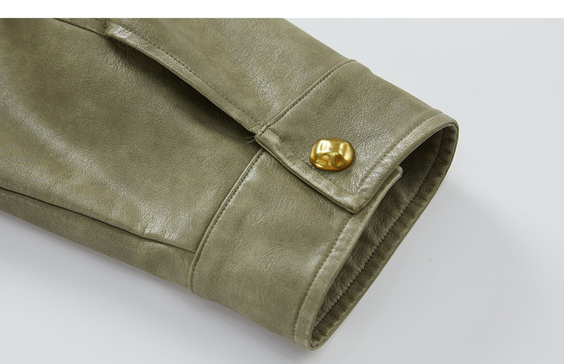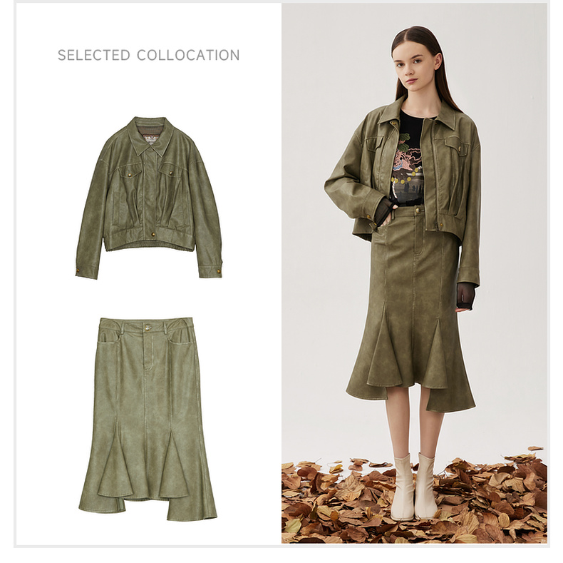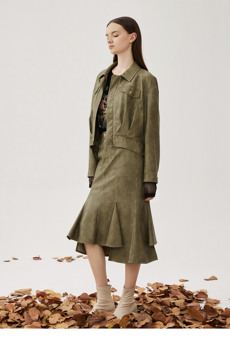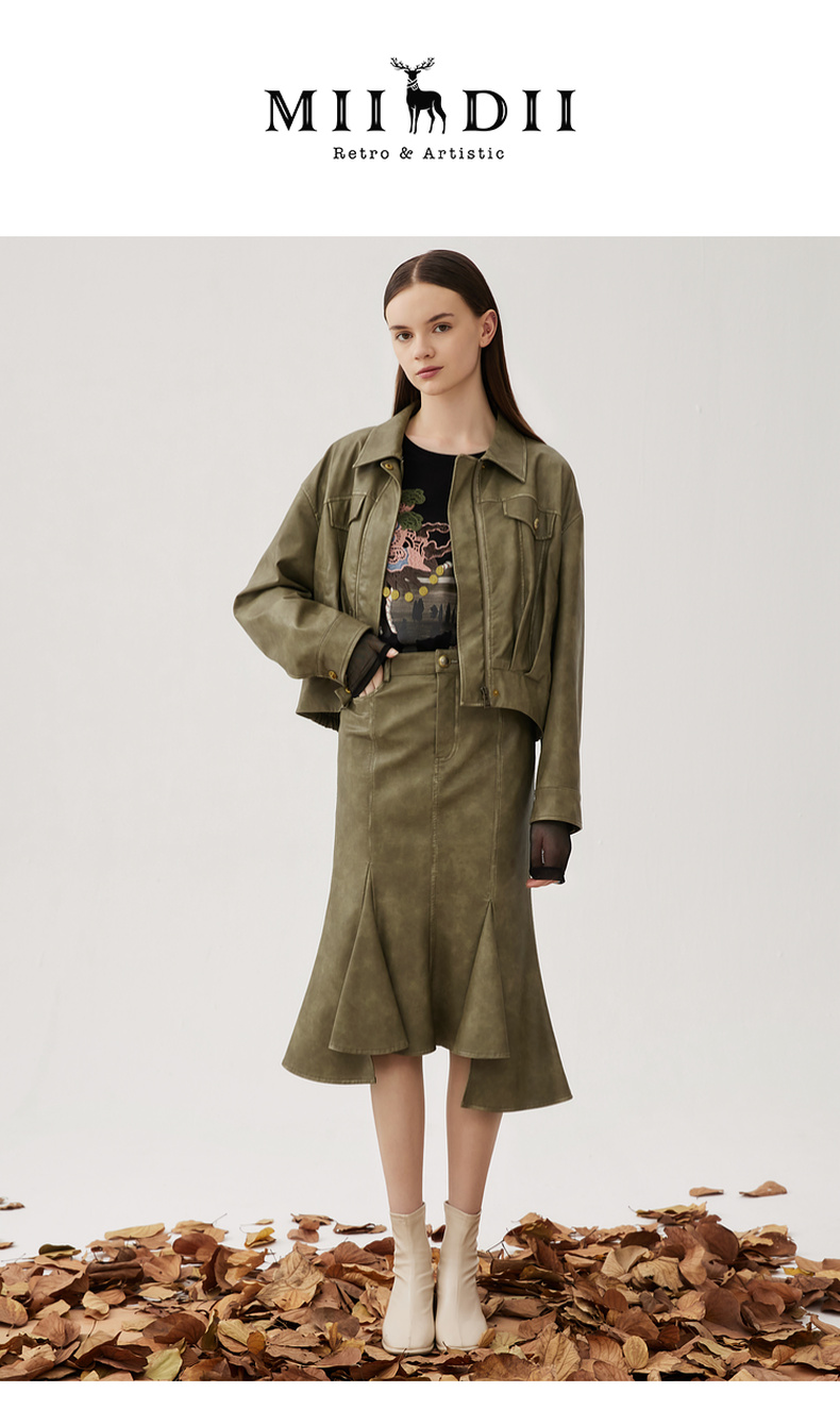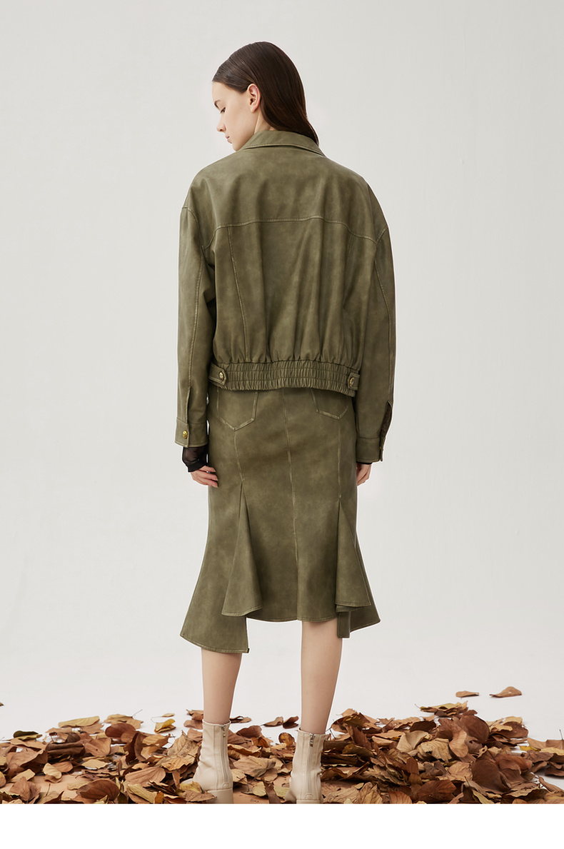 谜底皮衣女士2024秋新品率性时尚宽松翻领气质短款外套243MW1092