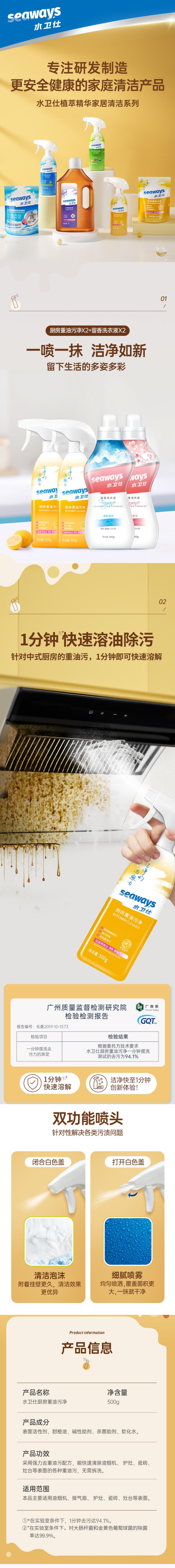 水卫仕 (樱花香+海洋香)留香洗衣液+油污净X2瓶