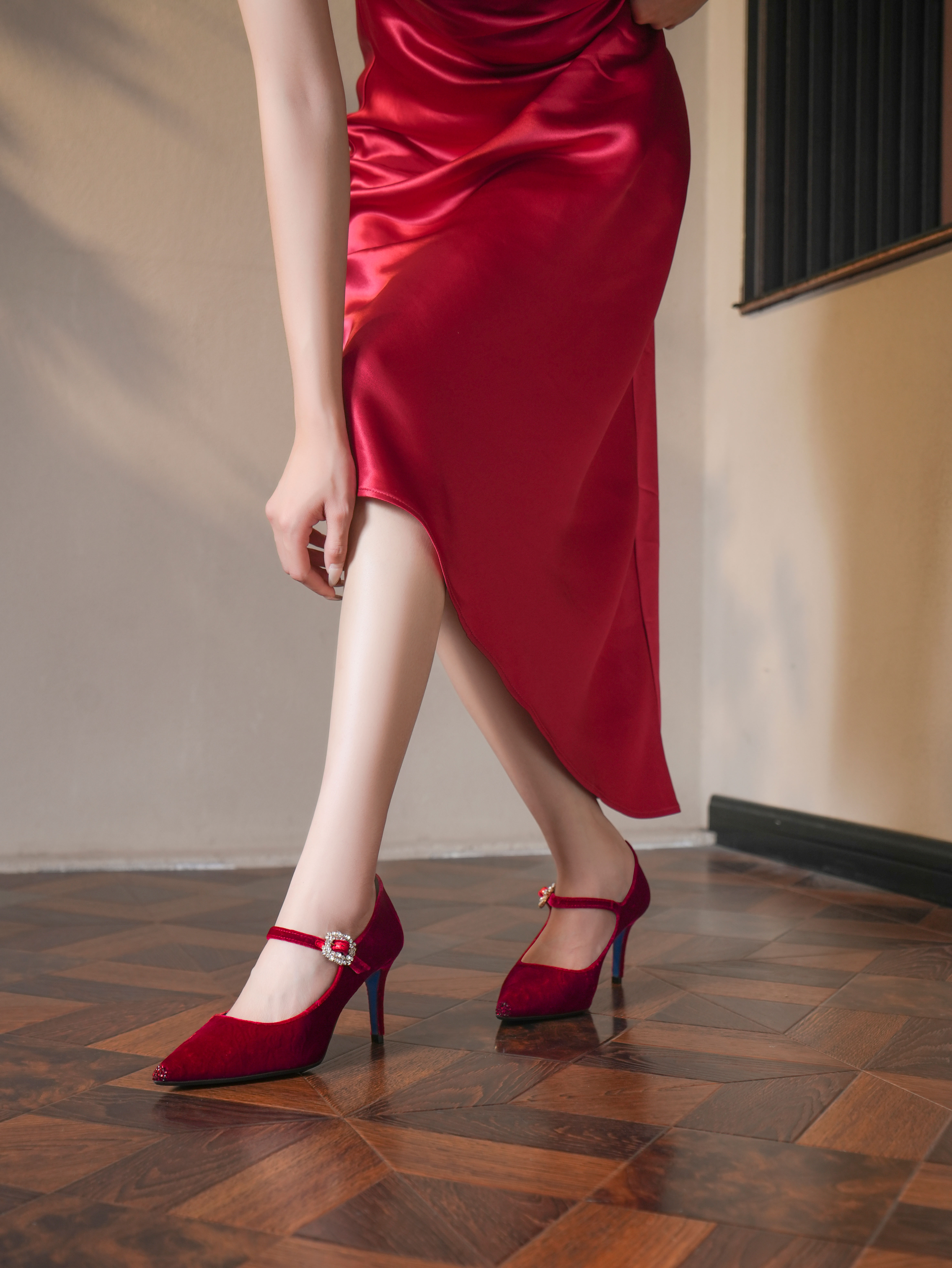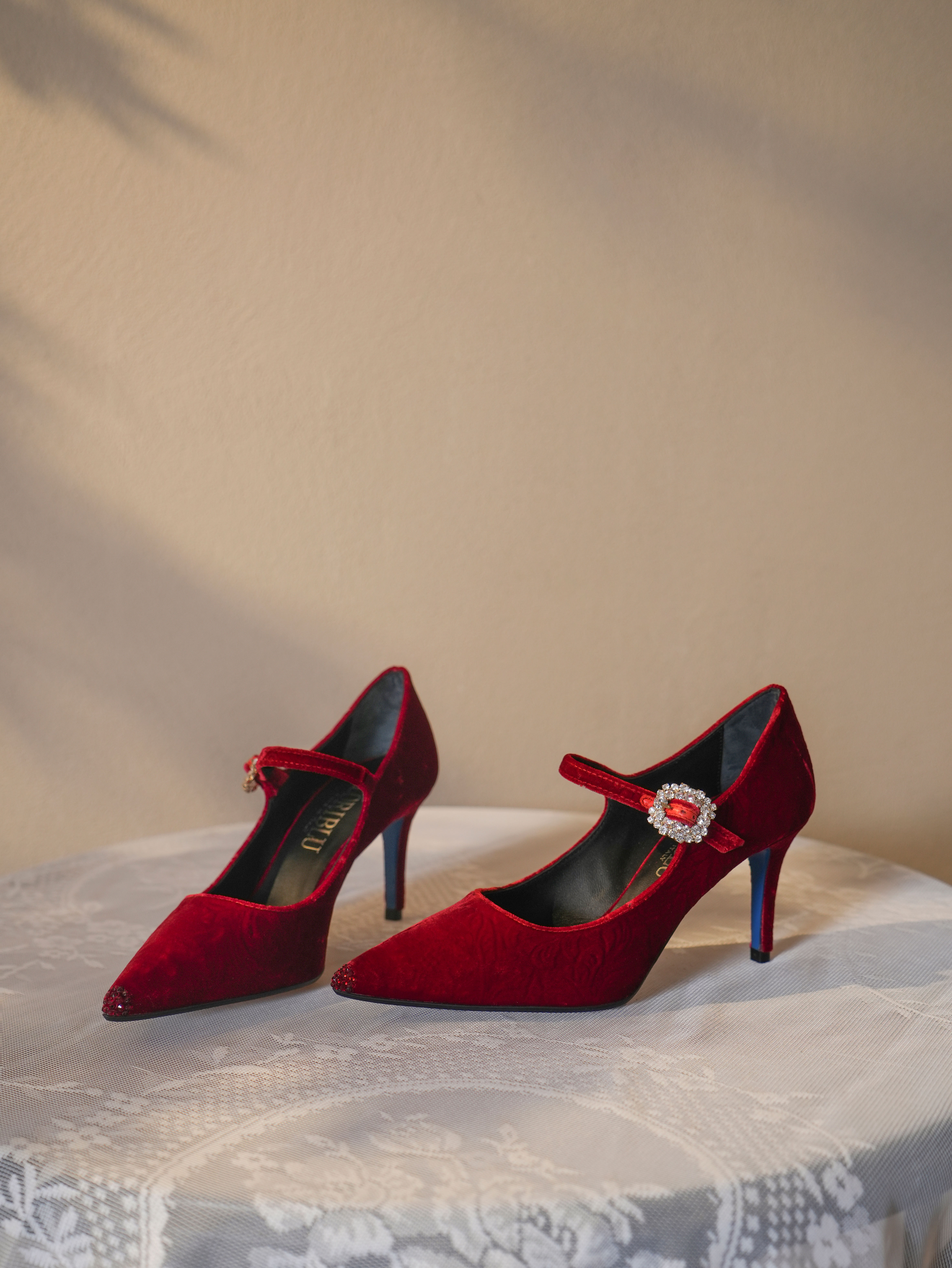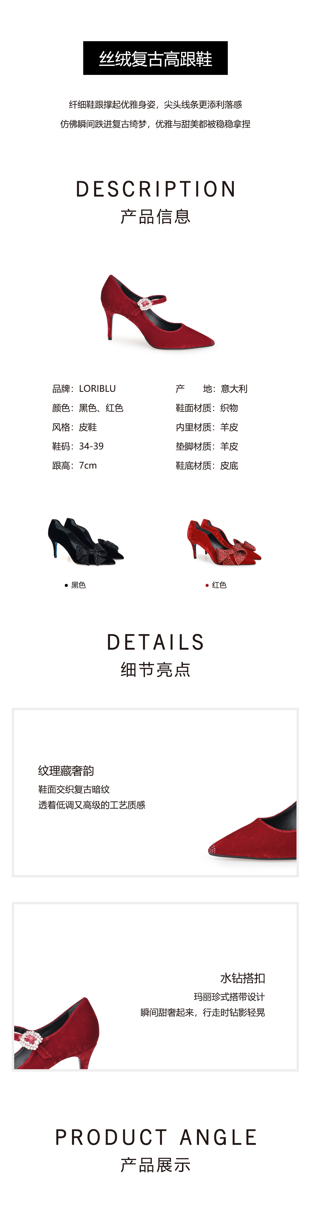 豪麟名鞋LORIBLU女鞋玛丽珍鞋织物6AXSCF53红色