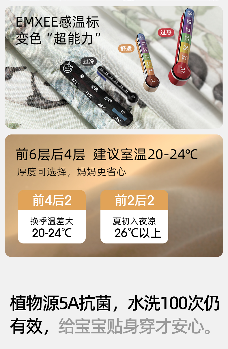 【宝宝安睡】EMXEE嫚熙婴童纱罗长袖分腿睡袋四季安抚