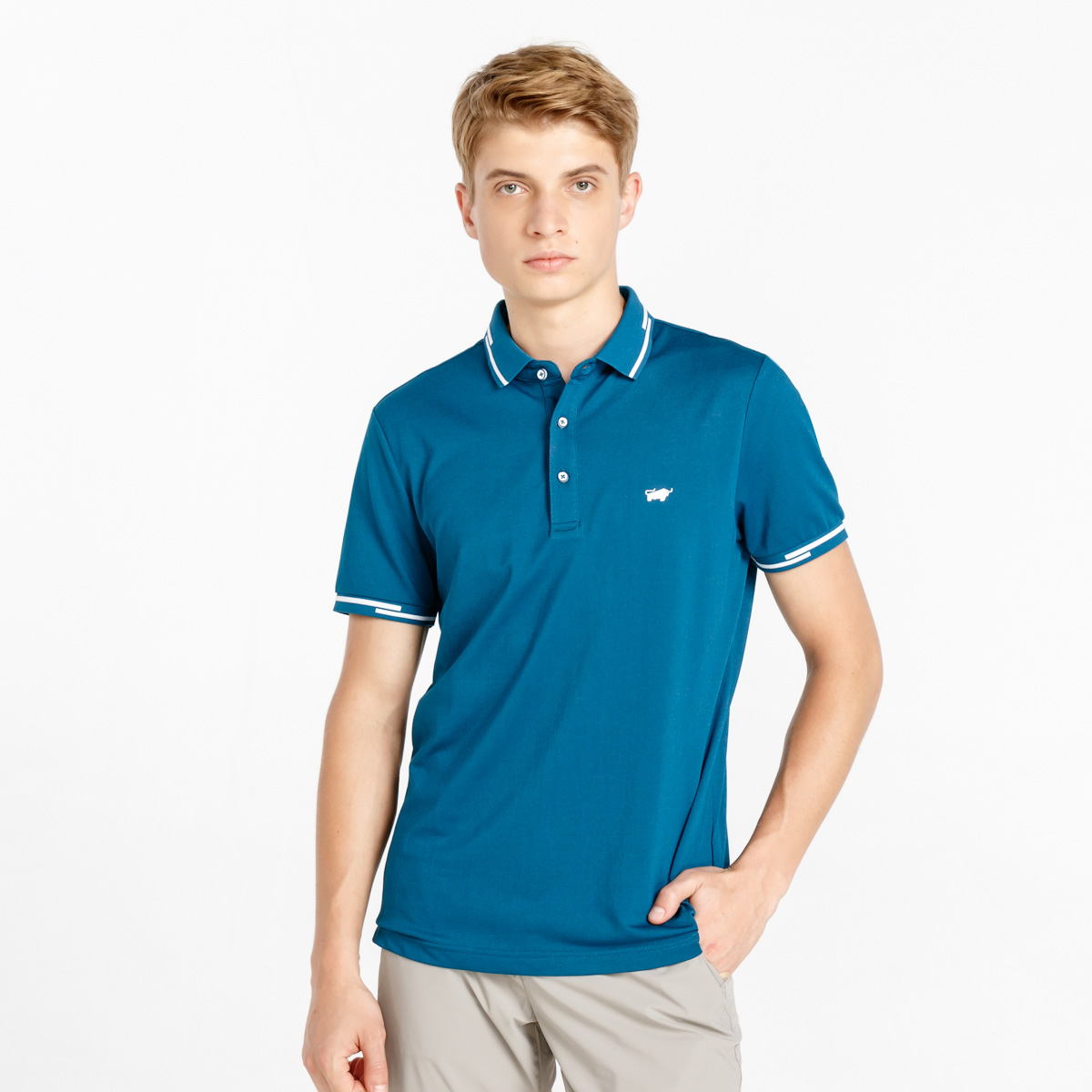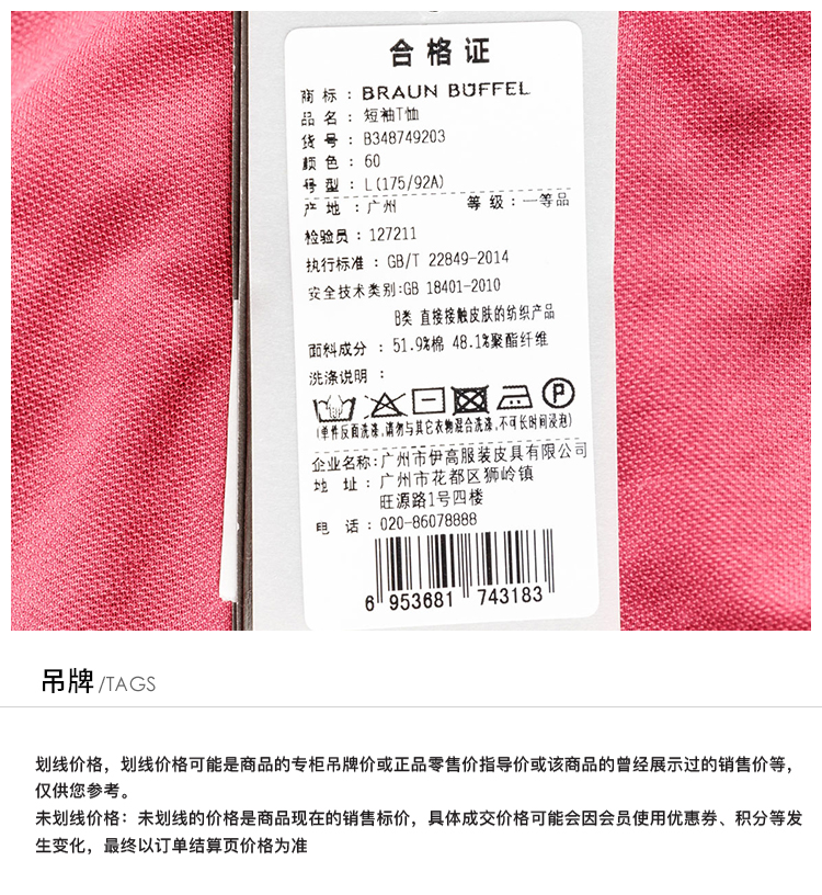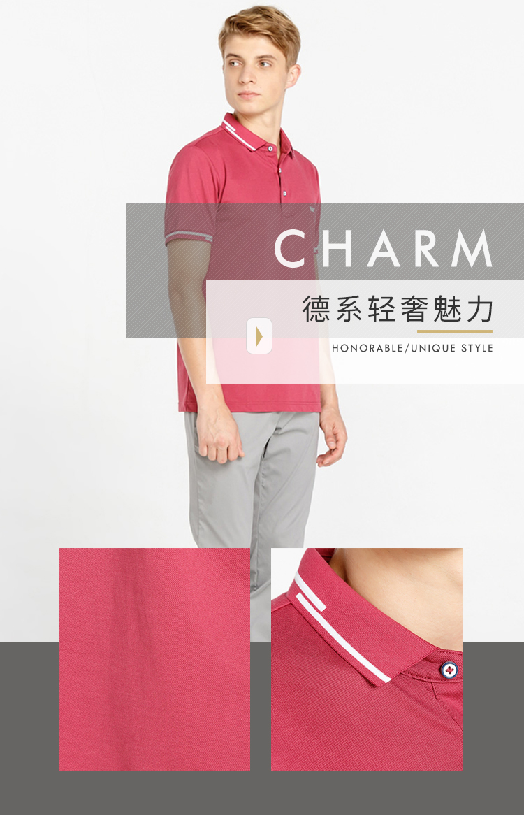 BRAUN BUFFEL/布兰施男士商务拼色翻领男装短袖T恤保罗polo衫男
