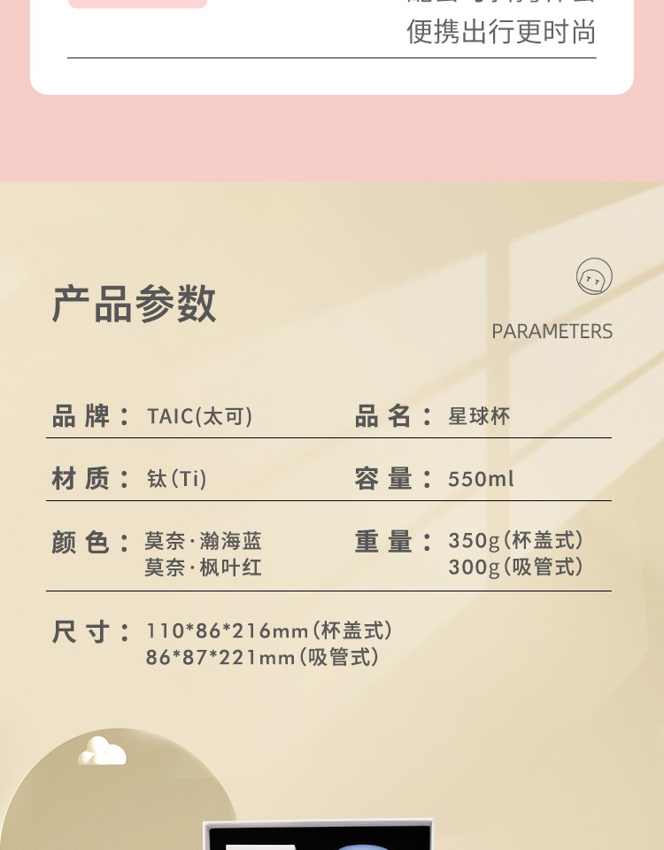 TAIC太可纯钛智能星球保温杯550ml带吸管水壶上学专用杯