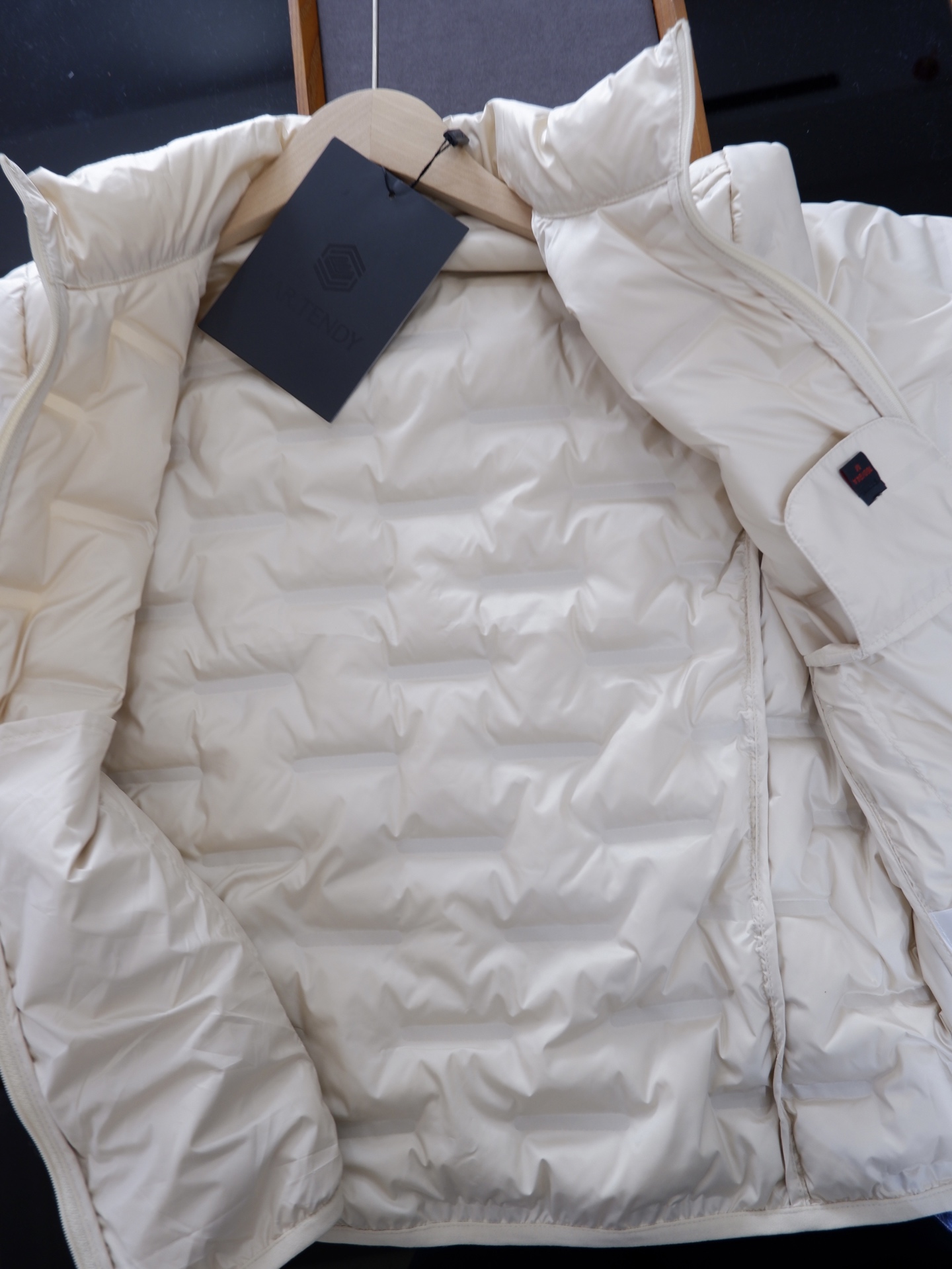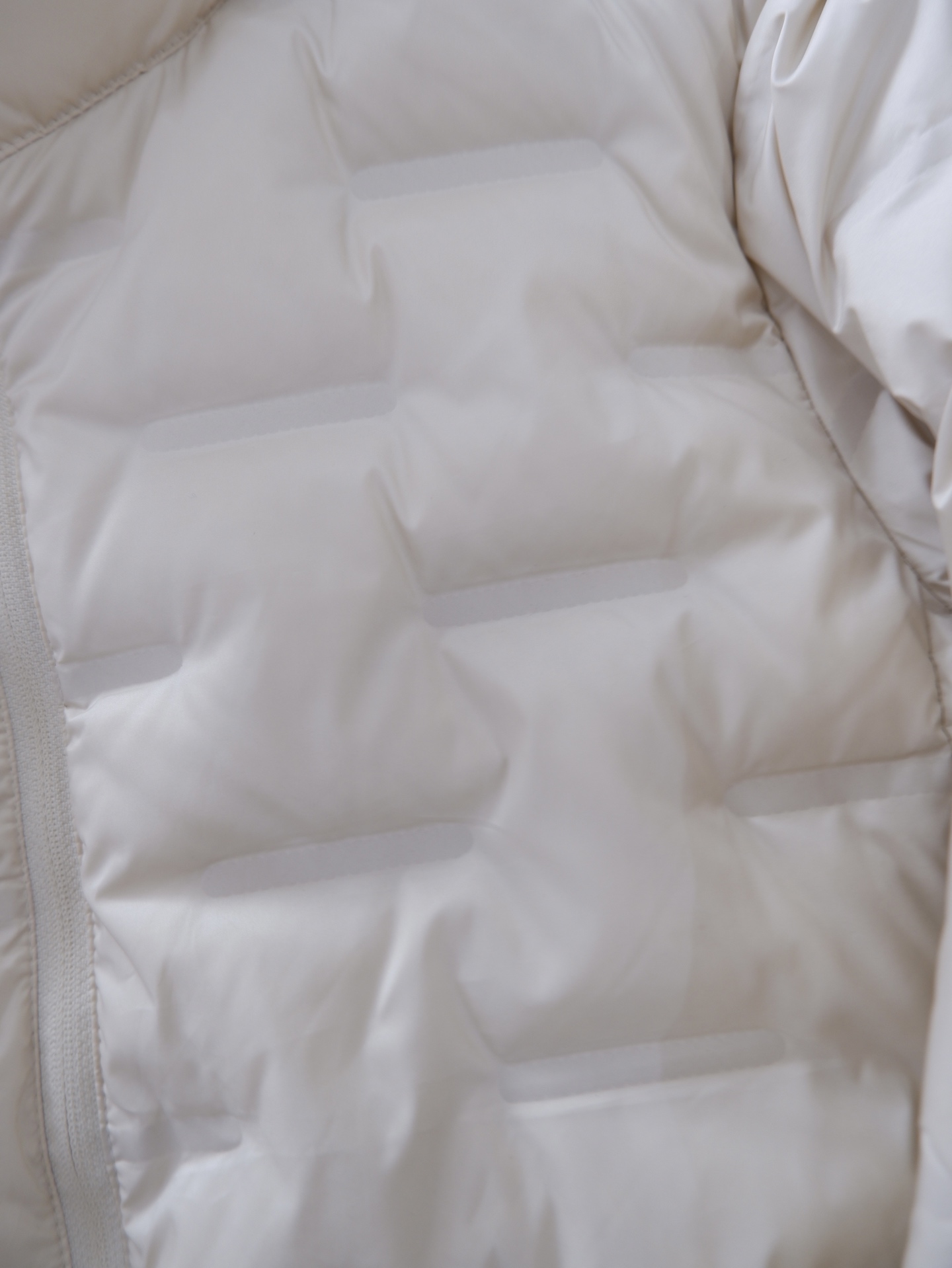 重工压胶的工艺,让每一格的羽绒服都固定在位置上, 既然是水洗后,也不会移位,更不会钻绒