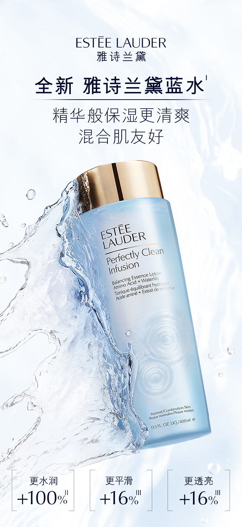 雅诗兰黛 柔丝焕彩蓝水400ml 混合肌推荐