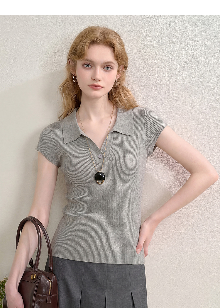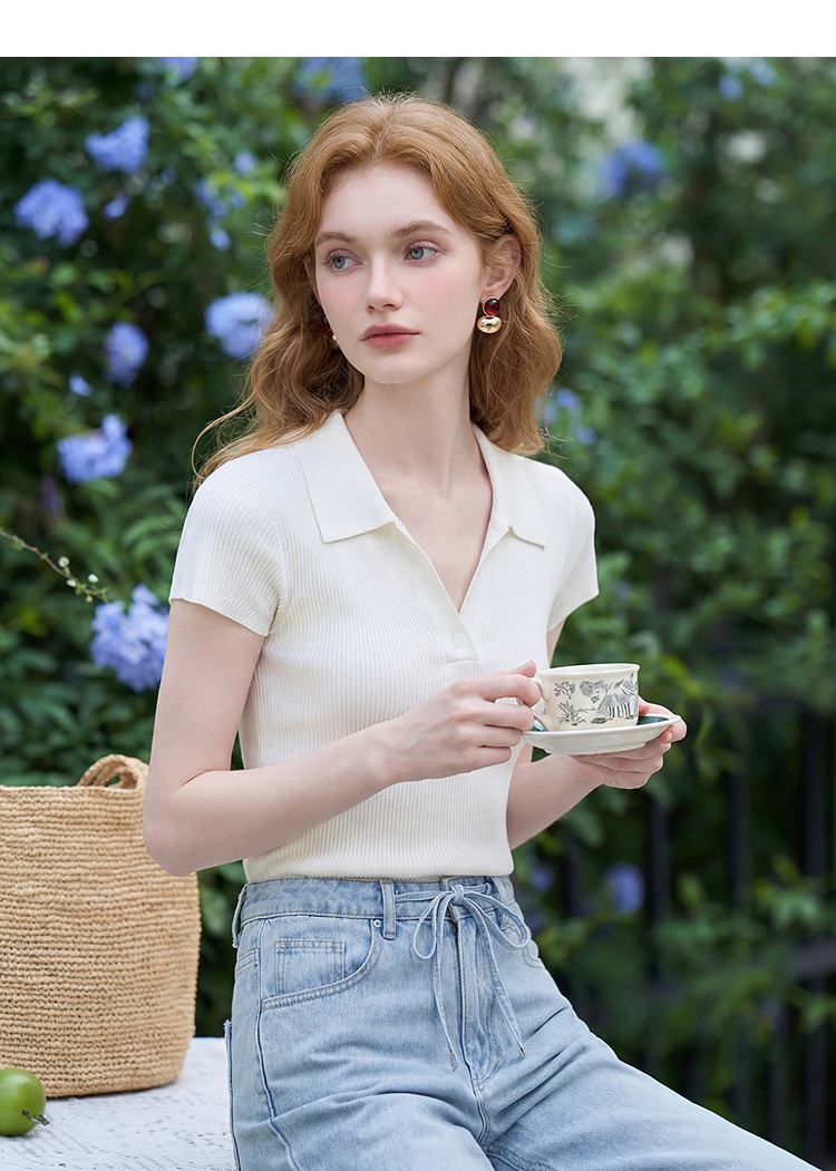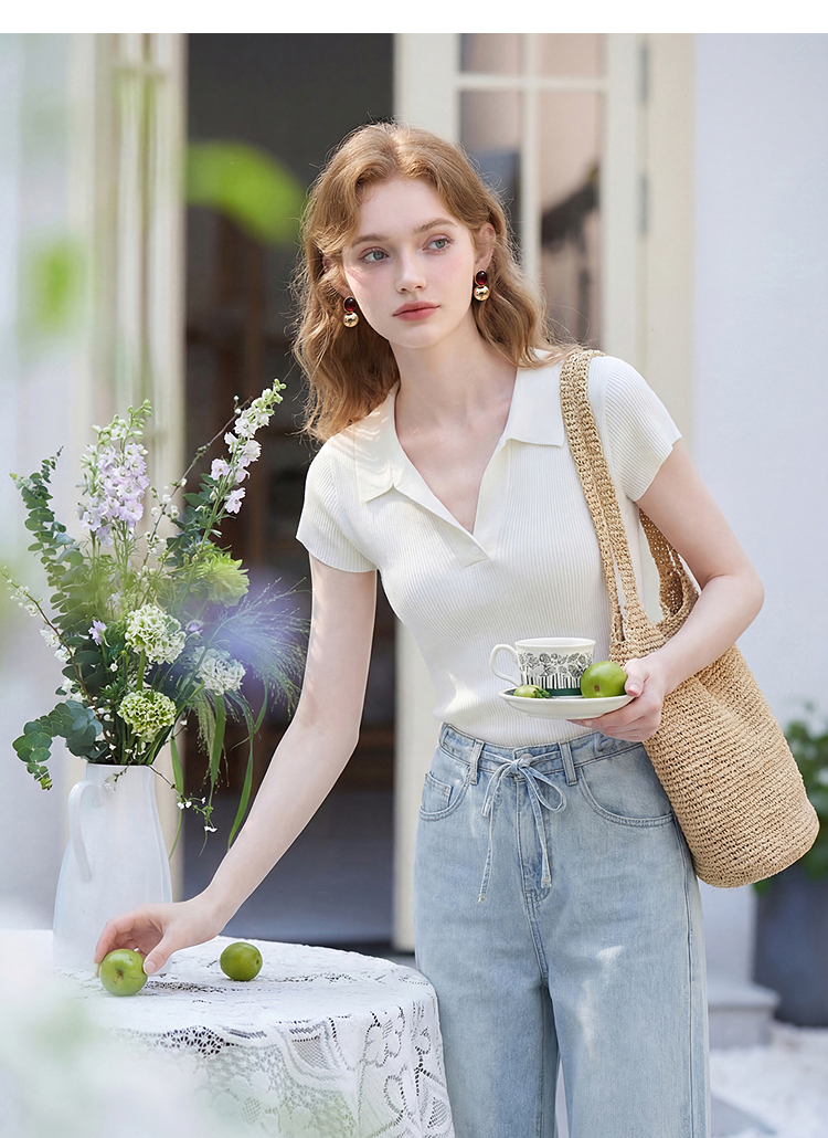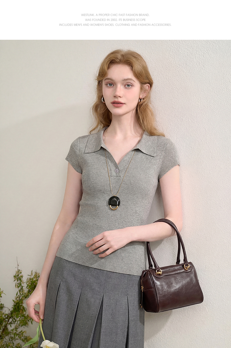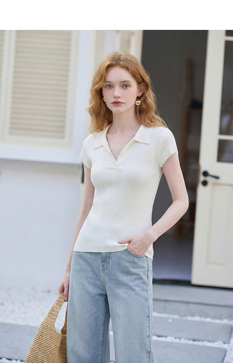 西遇淑女风法式2026春季新款简约POLO领女修身短袖T恤时尚上衣H0060193