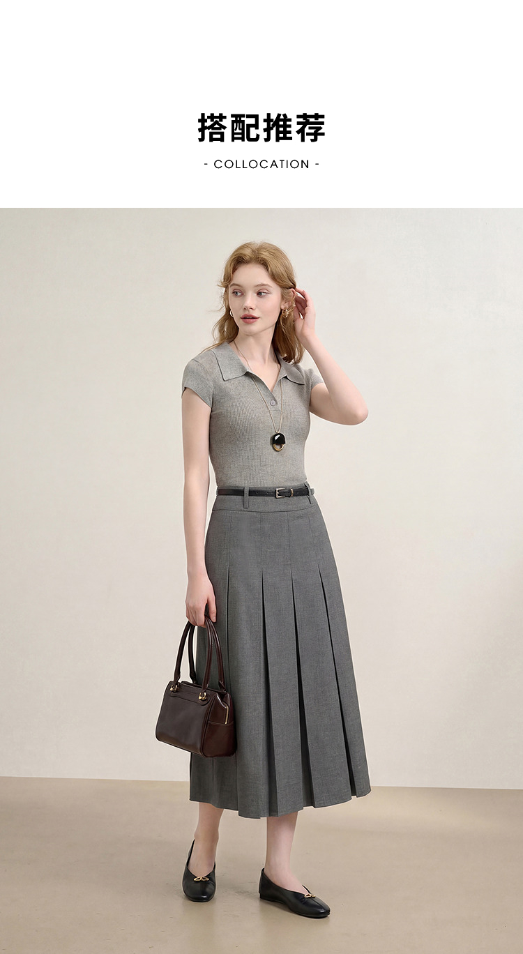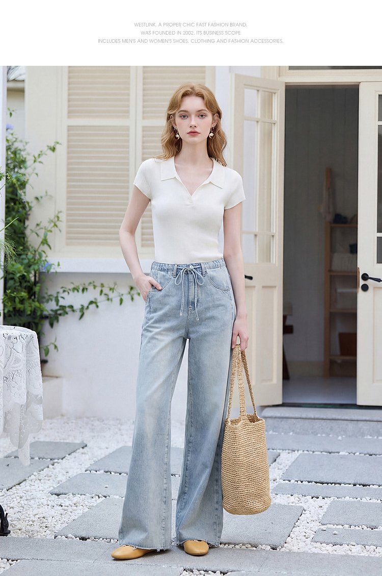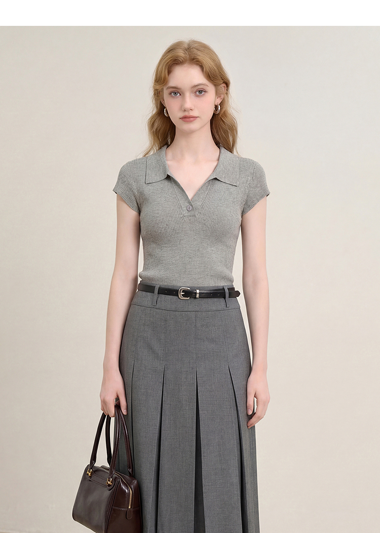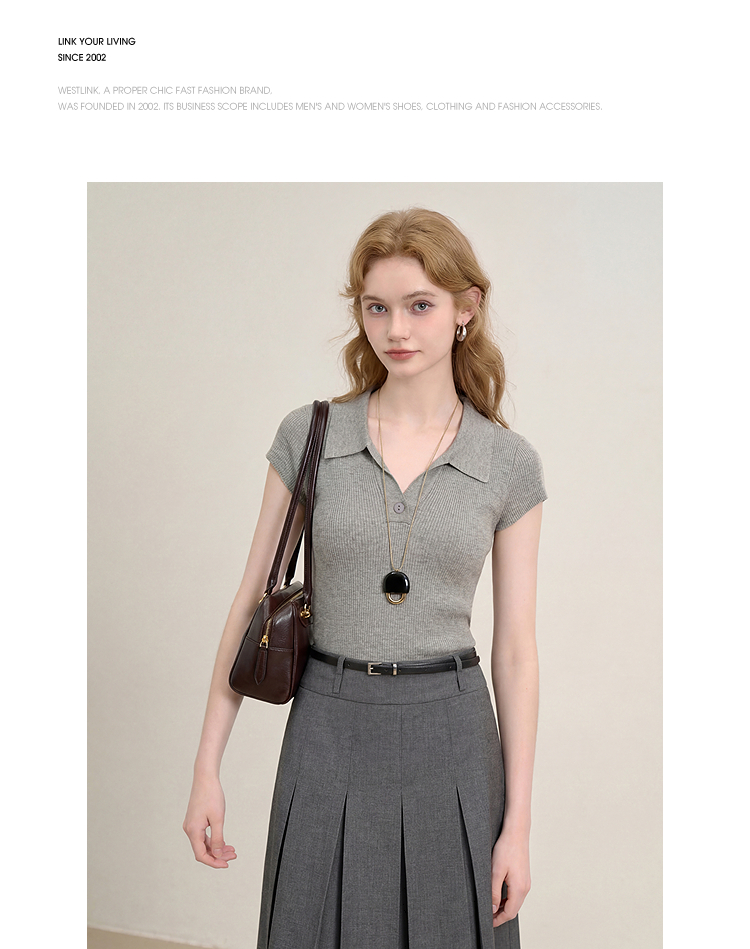 西遇淑女风法式2026春季新款简约POLO领女修身短袖T恤时尚上衣H0060193