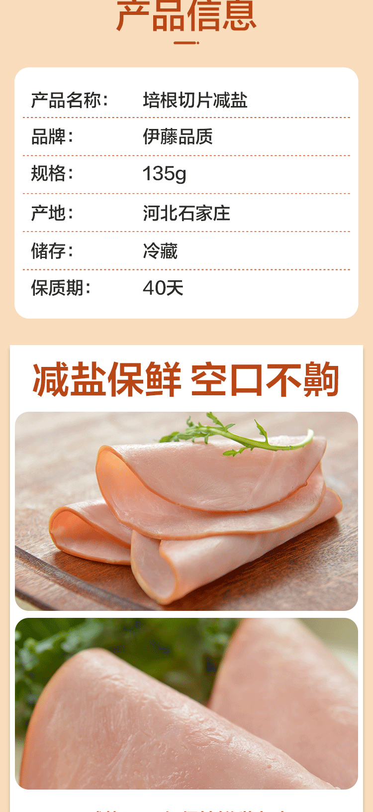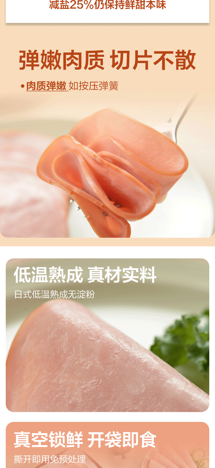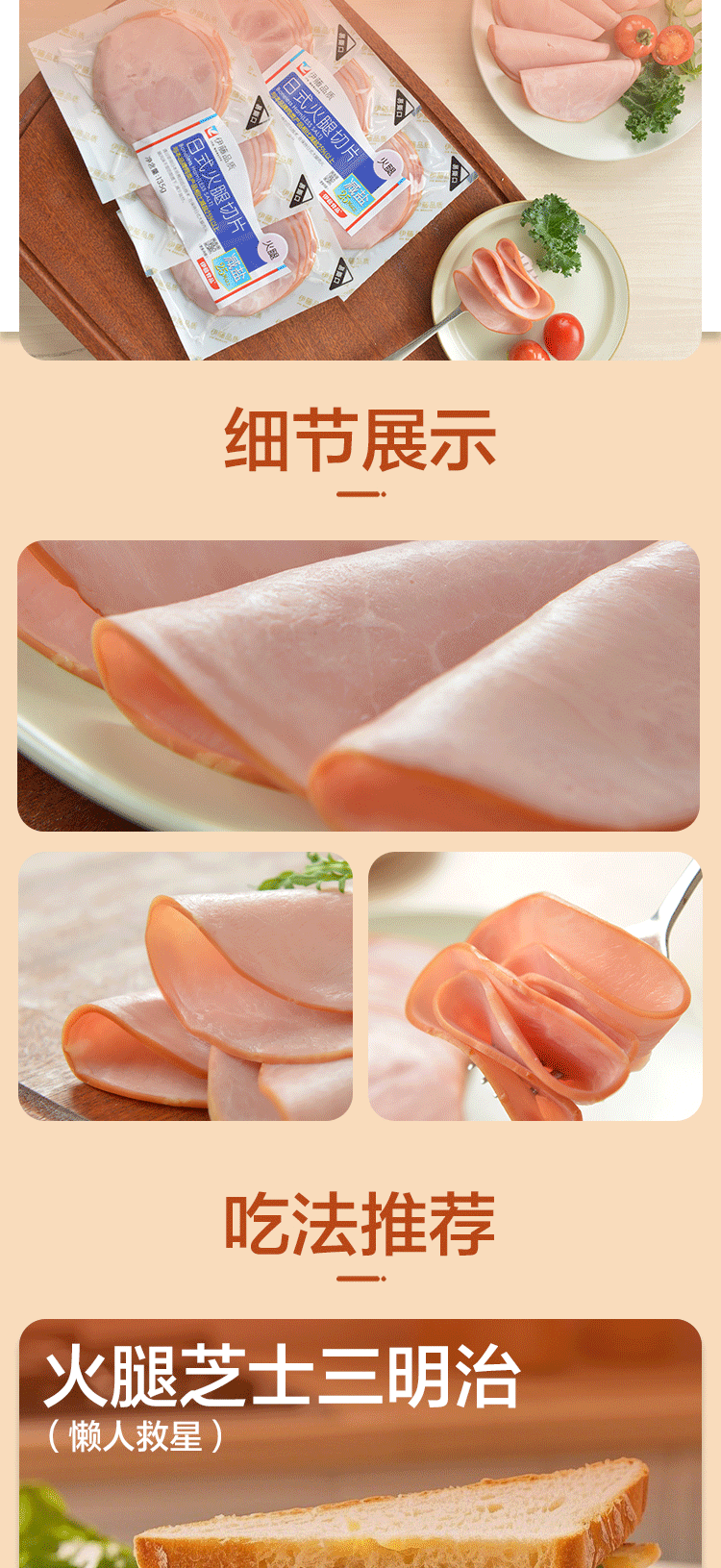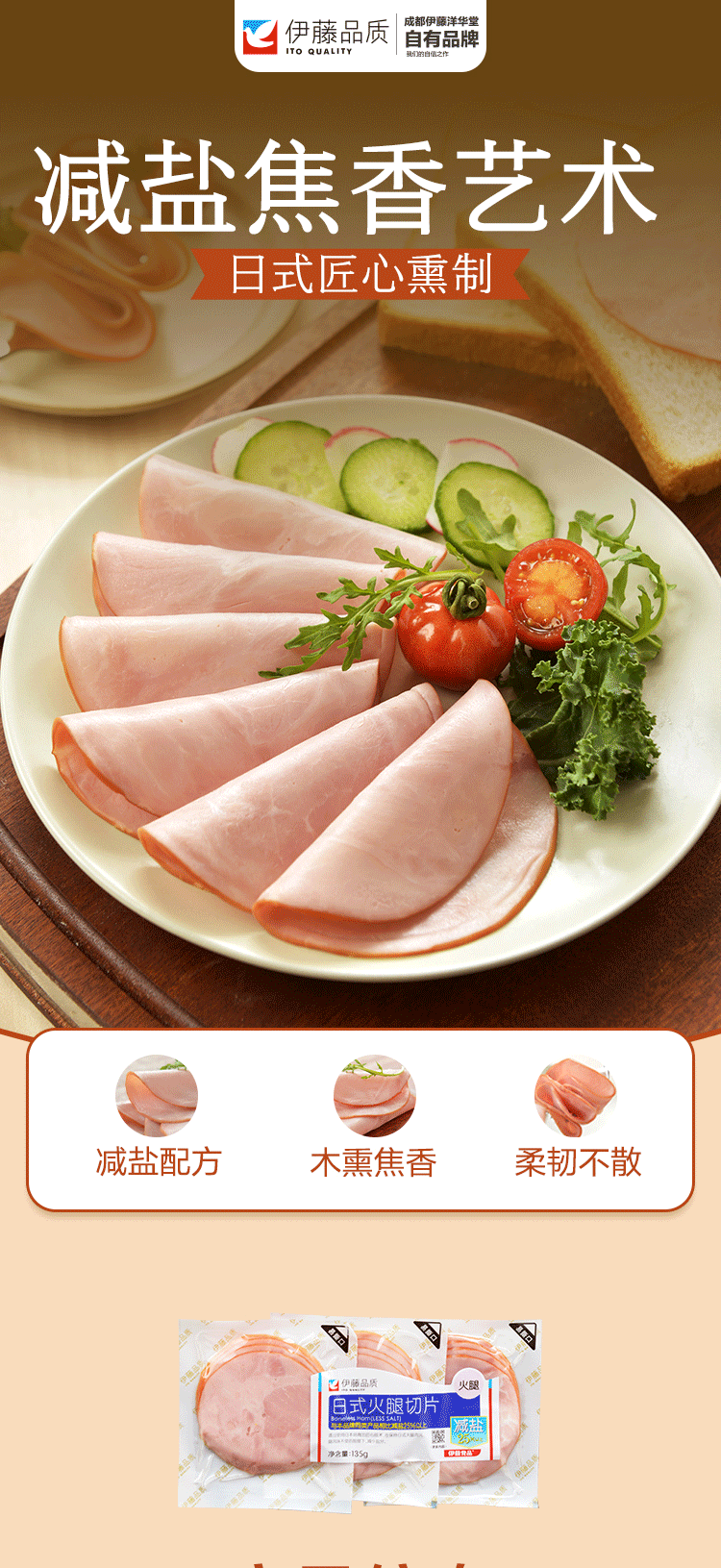 伊藤品质无糖日式火腿切片3联包 135g/组(即食便捷)
