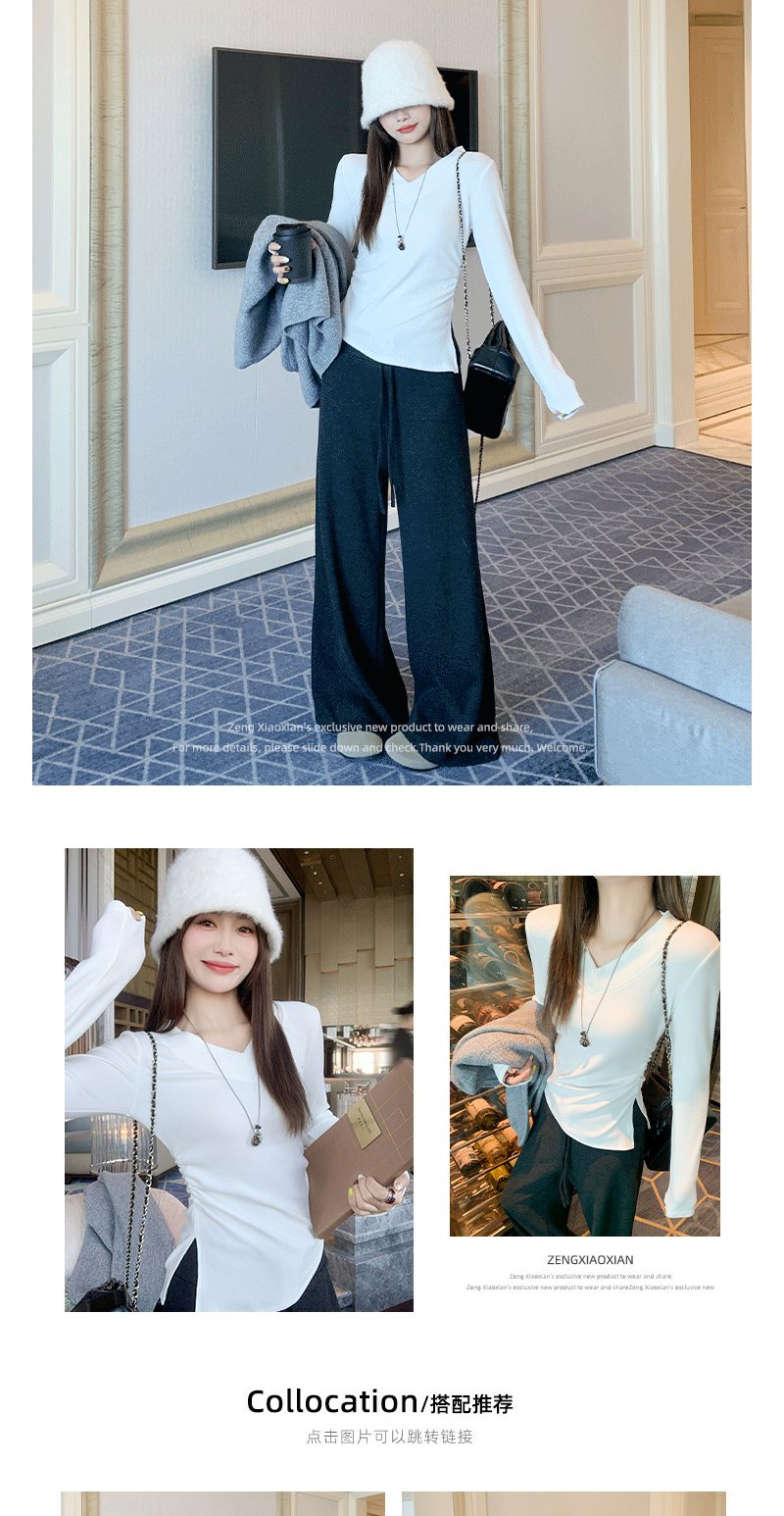 <曾小咸推荐>现货秒杀 !微信超特价!2色v领磨毛开叉t恤 日常119.99 立减60 秒杀59.99!!