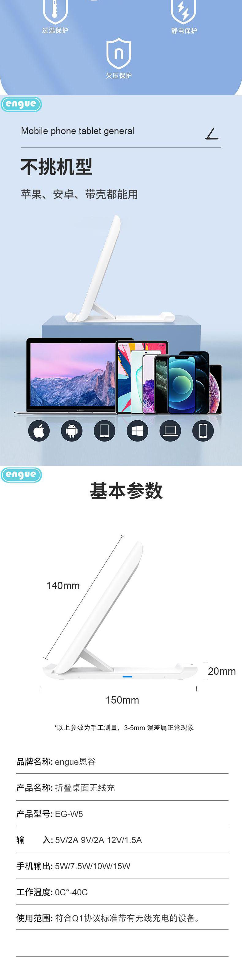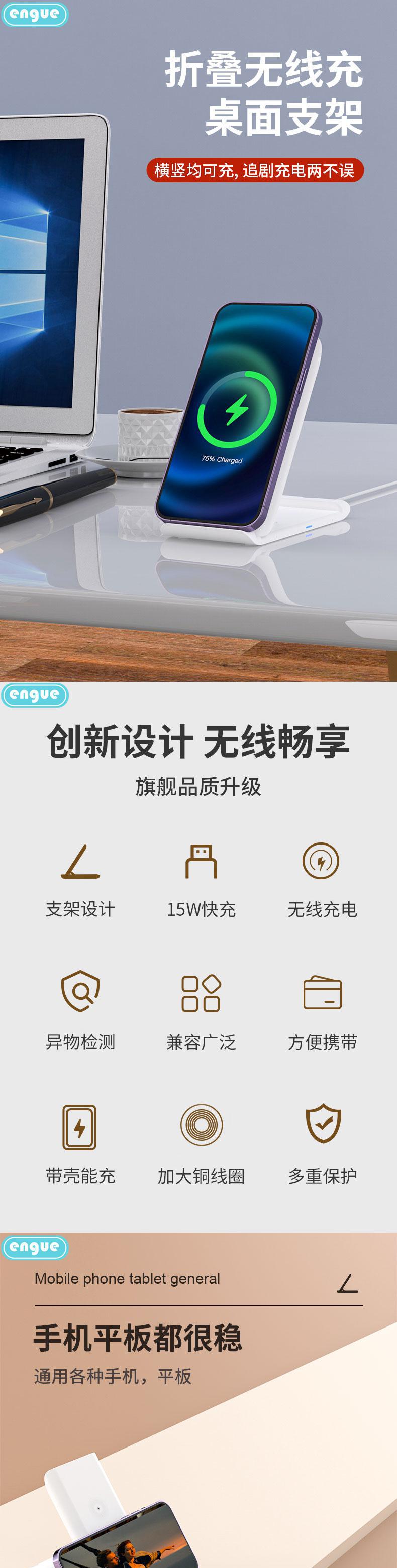 【自营】engue恩谷威能15W折叠桌面无线充 EG-W5三合一收纳便携充手机手表耳机