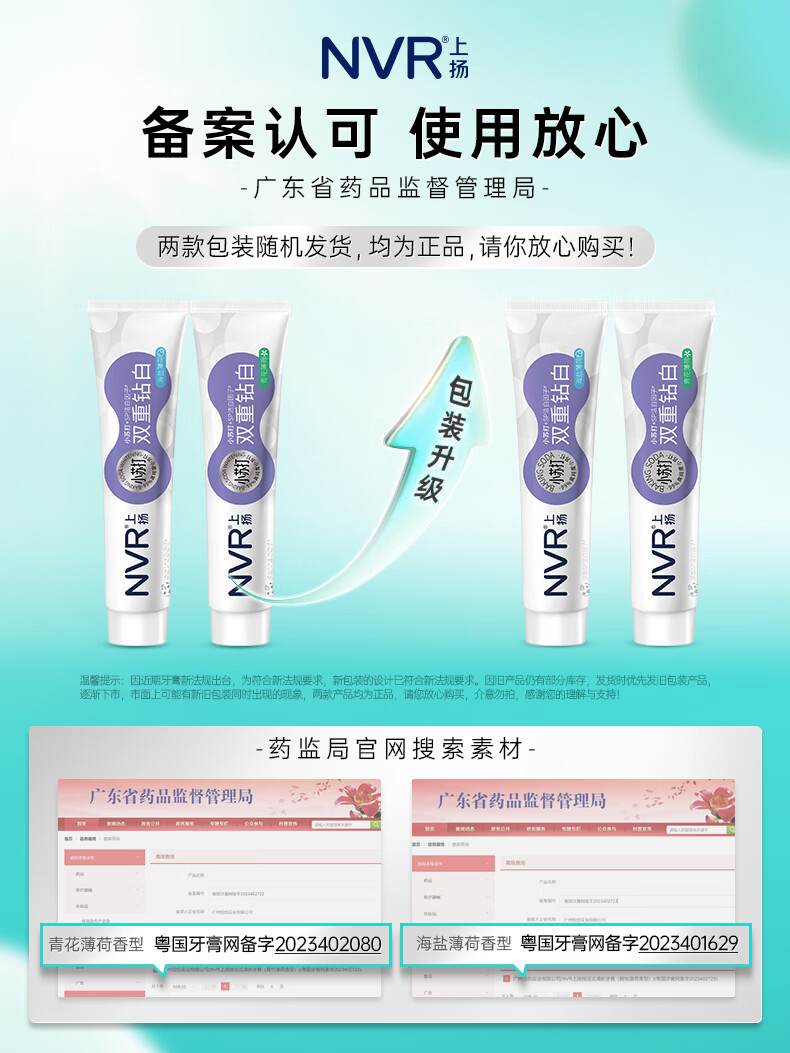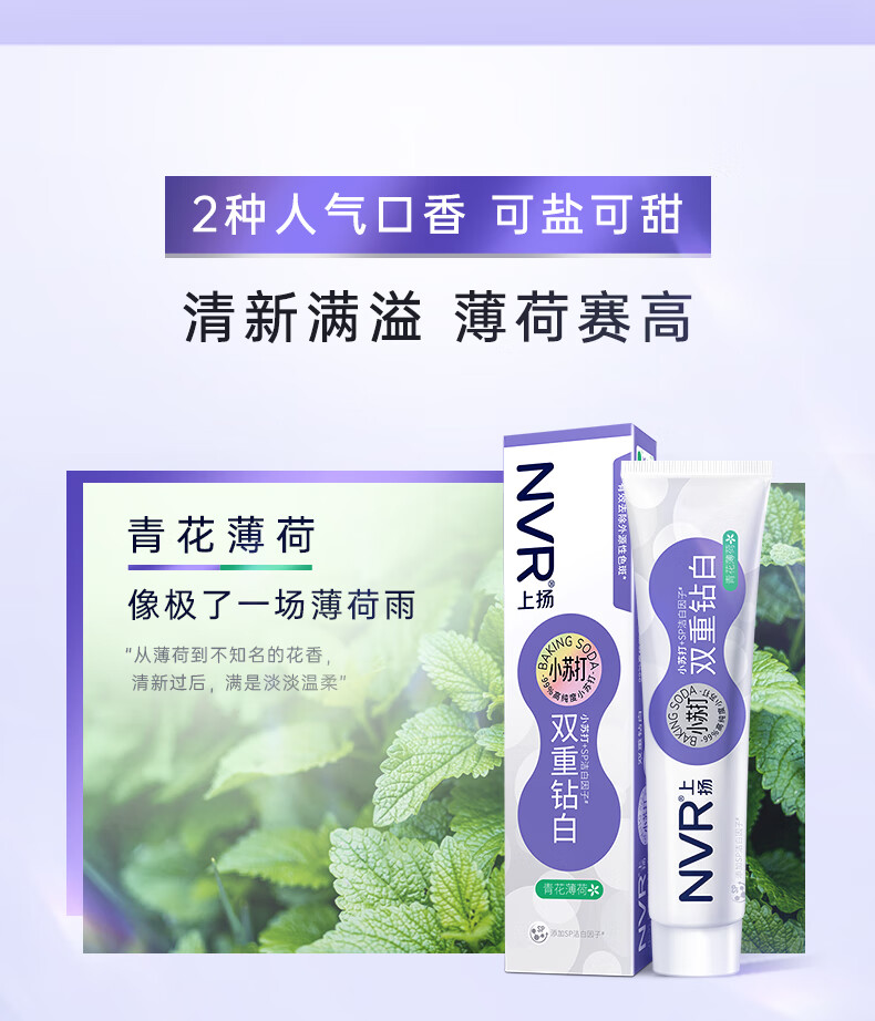 NVR上扬小苏打亮白牙膏 清新口气清洁家庭牙膏 海盐薄荷200g