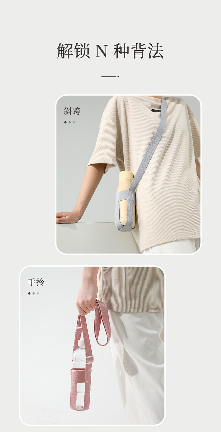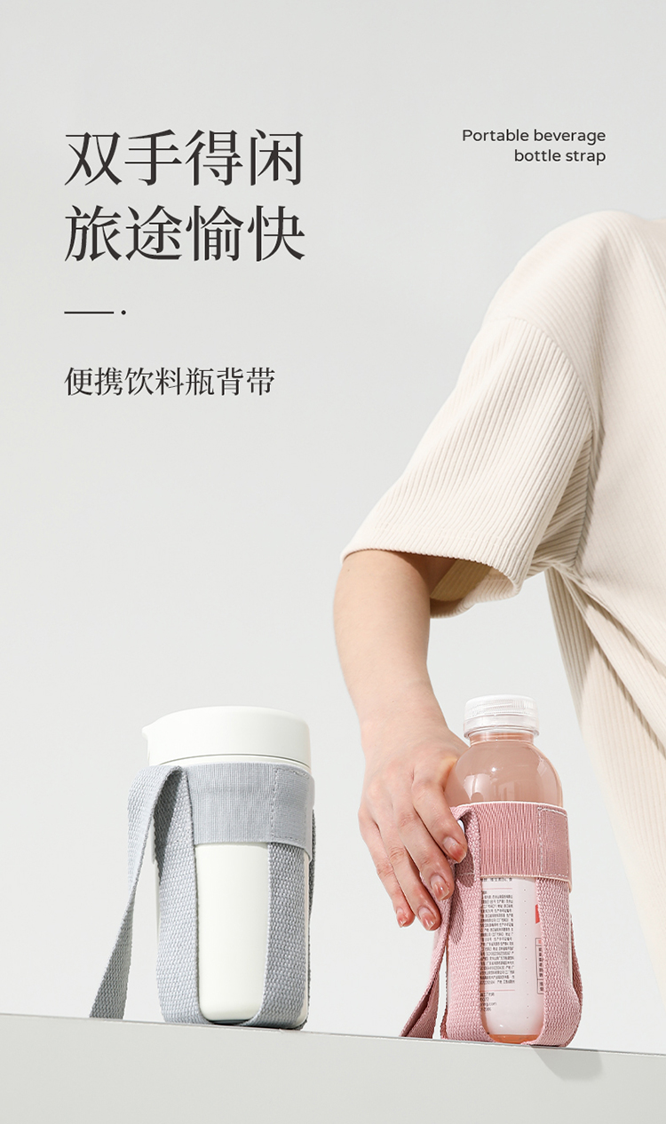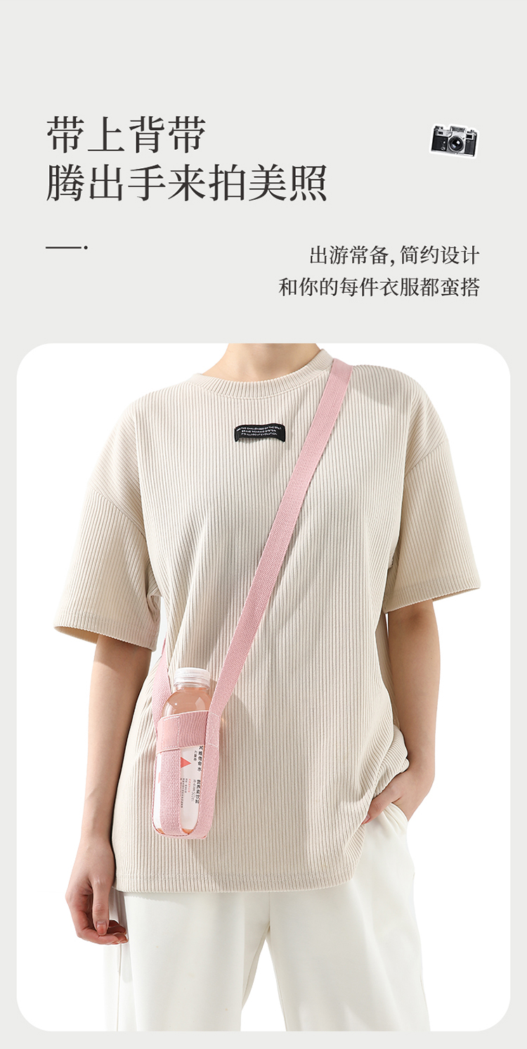 FaSoLa便携饮料瓶背带外出保温杯水杯套斜挎可背儿童水杯带挂绳