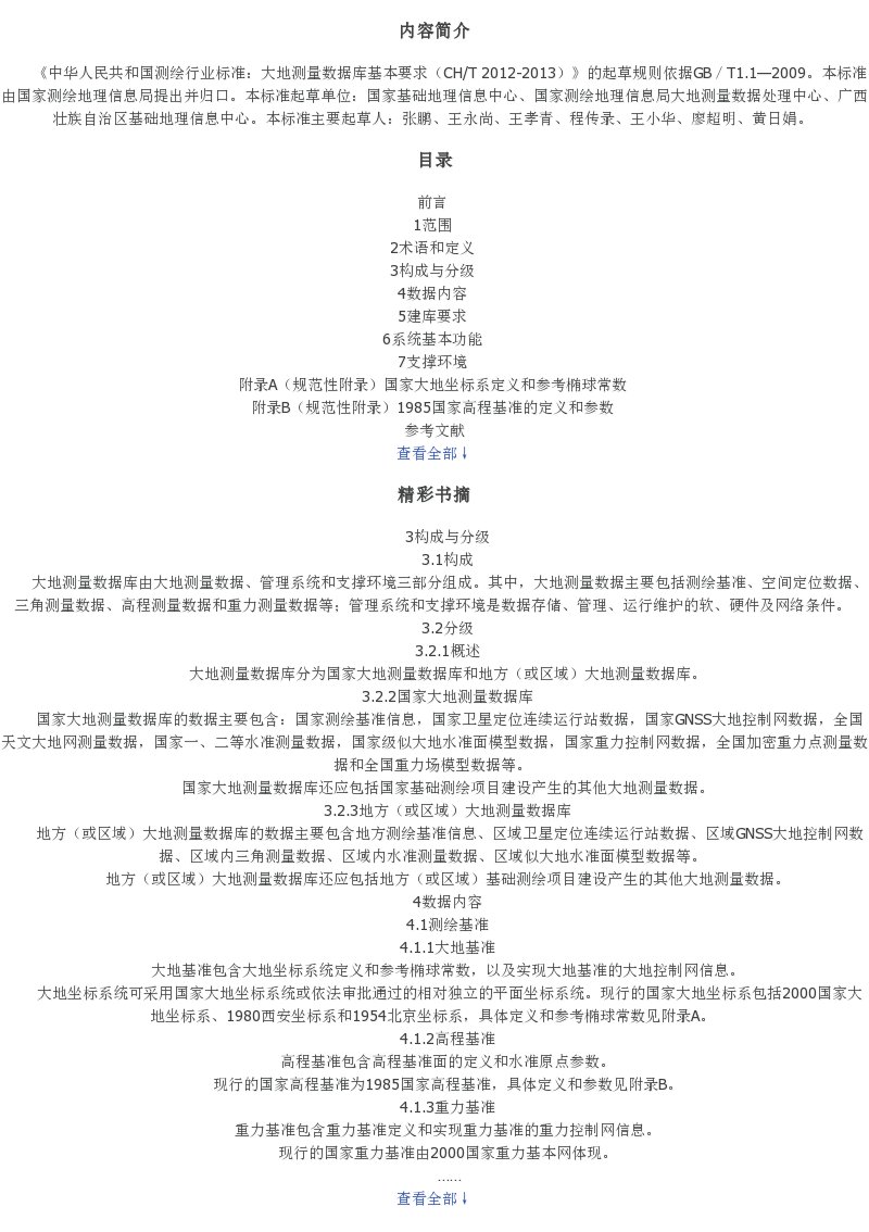 《中华人民共和国测绘行业标准:大地测量数据库基本要求(CH/T 2012-2013)》