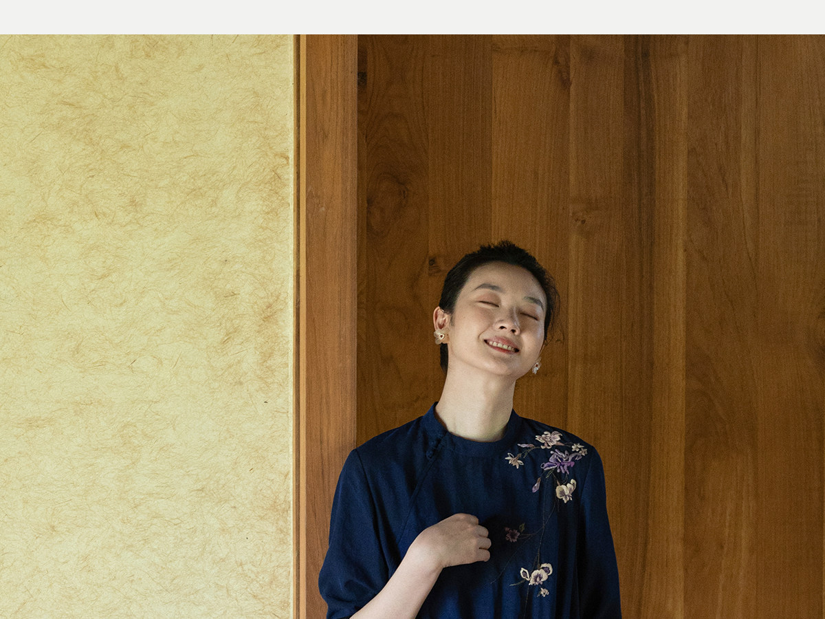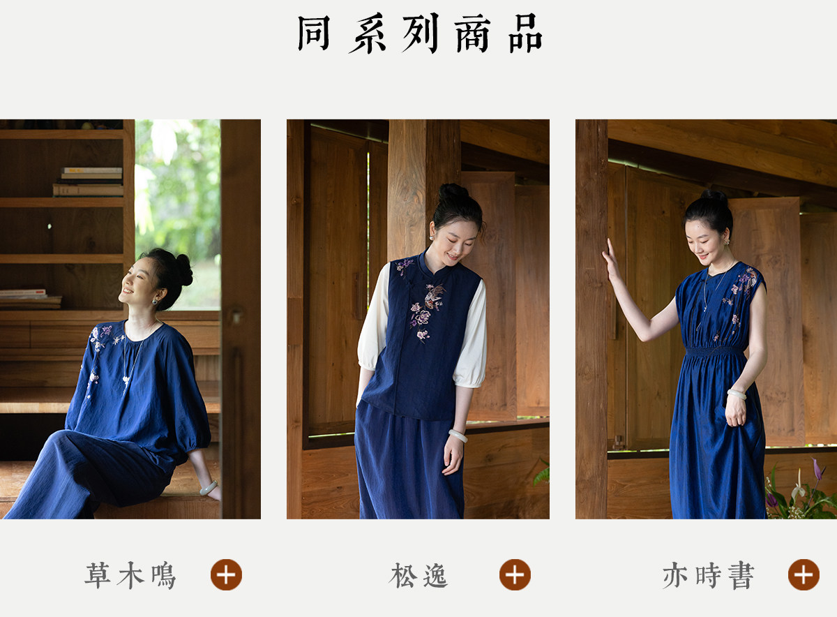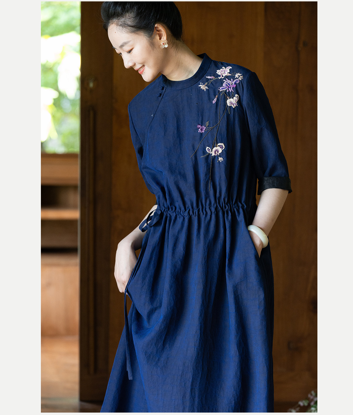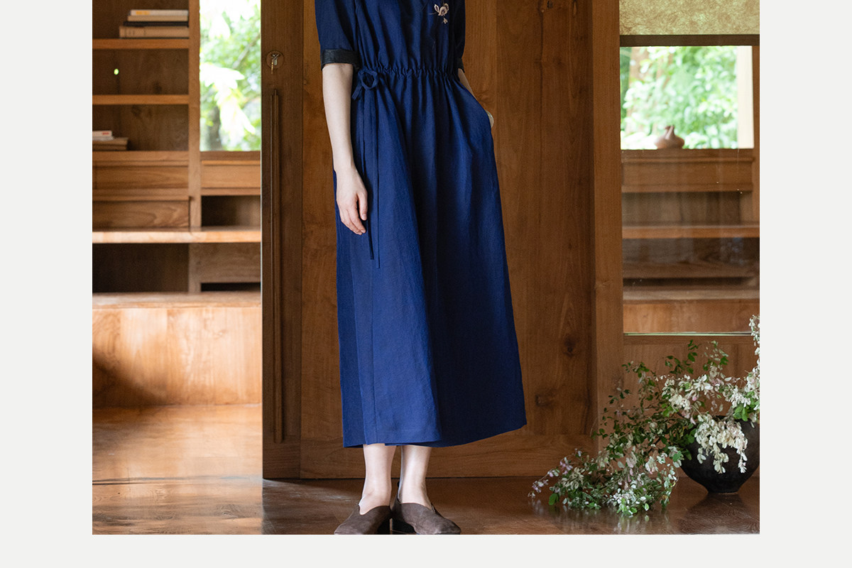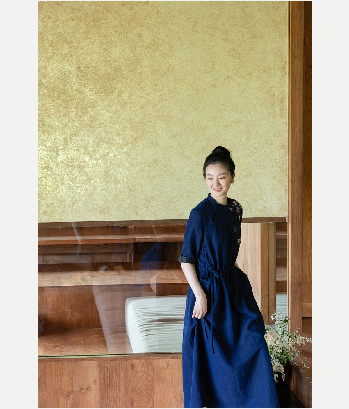 牧衣游原创 22姆米重磅手工刺绣香云纱连衣裙复古新中式长裙 蓝鸢