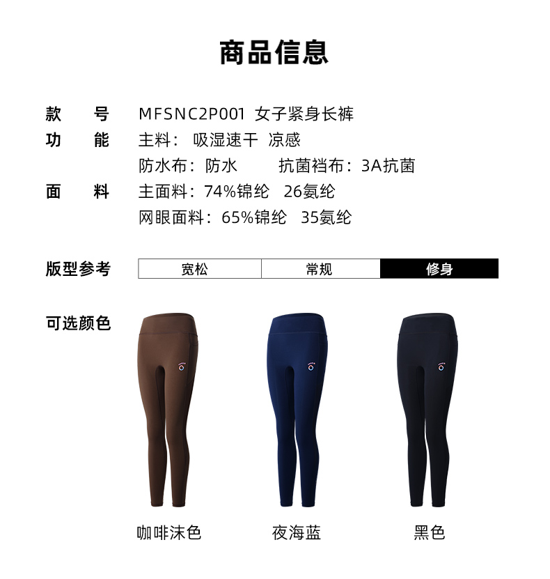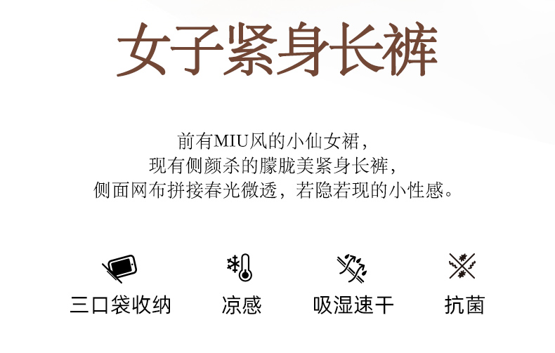 马孔多女子紧身长裤 腰部科技夹芯层 速干 凉感 抑菌 三口袋 防汗后兜