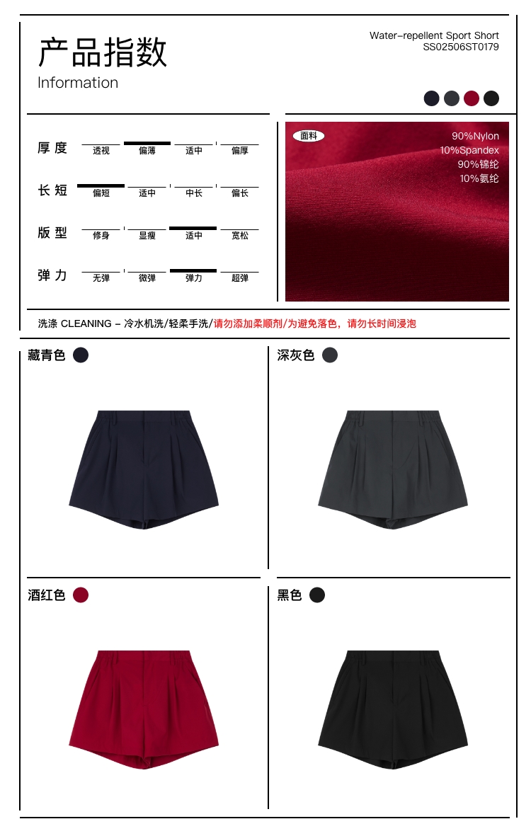 oneup防泼水双褶运动短裤