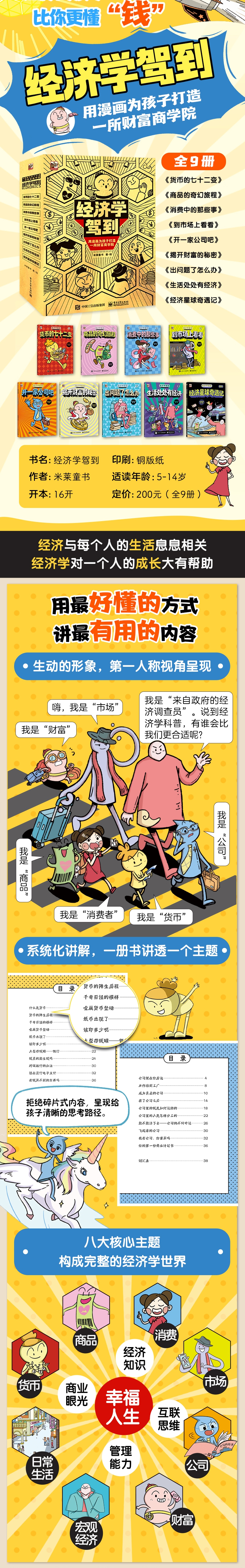 《经济学驾到》全9册 5-14岁 用最好懂的方式 讲最有用的内容 八大核心主题构成完整的经济学世界 用漫画为孩子打造一所财富商学院
