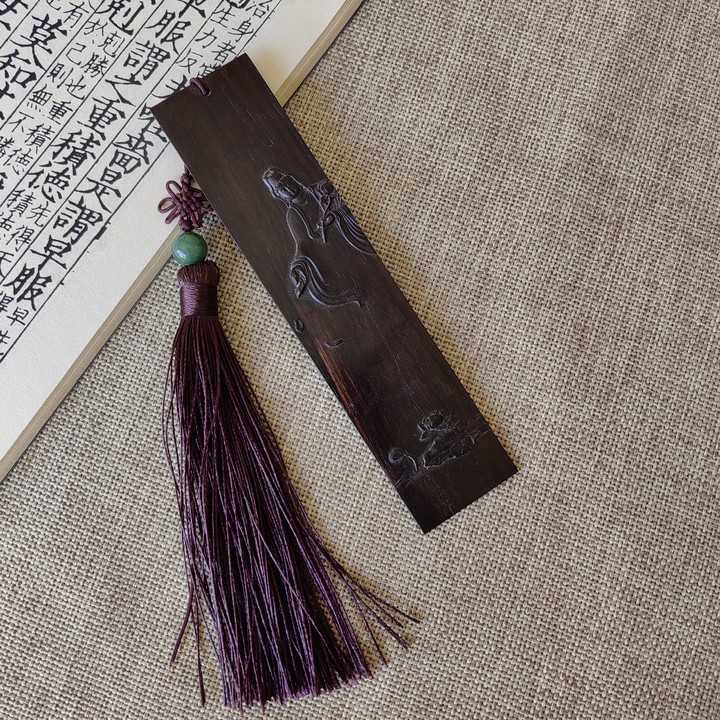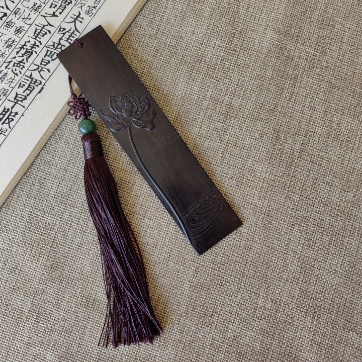 ↑《心似莲花开》紫光檀浮雕书签