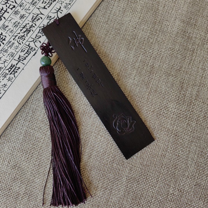 ↑《佛语》紫光檀浮雕书签