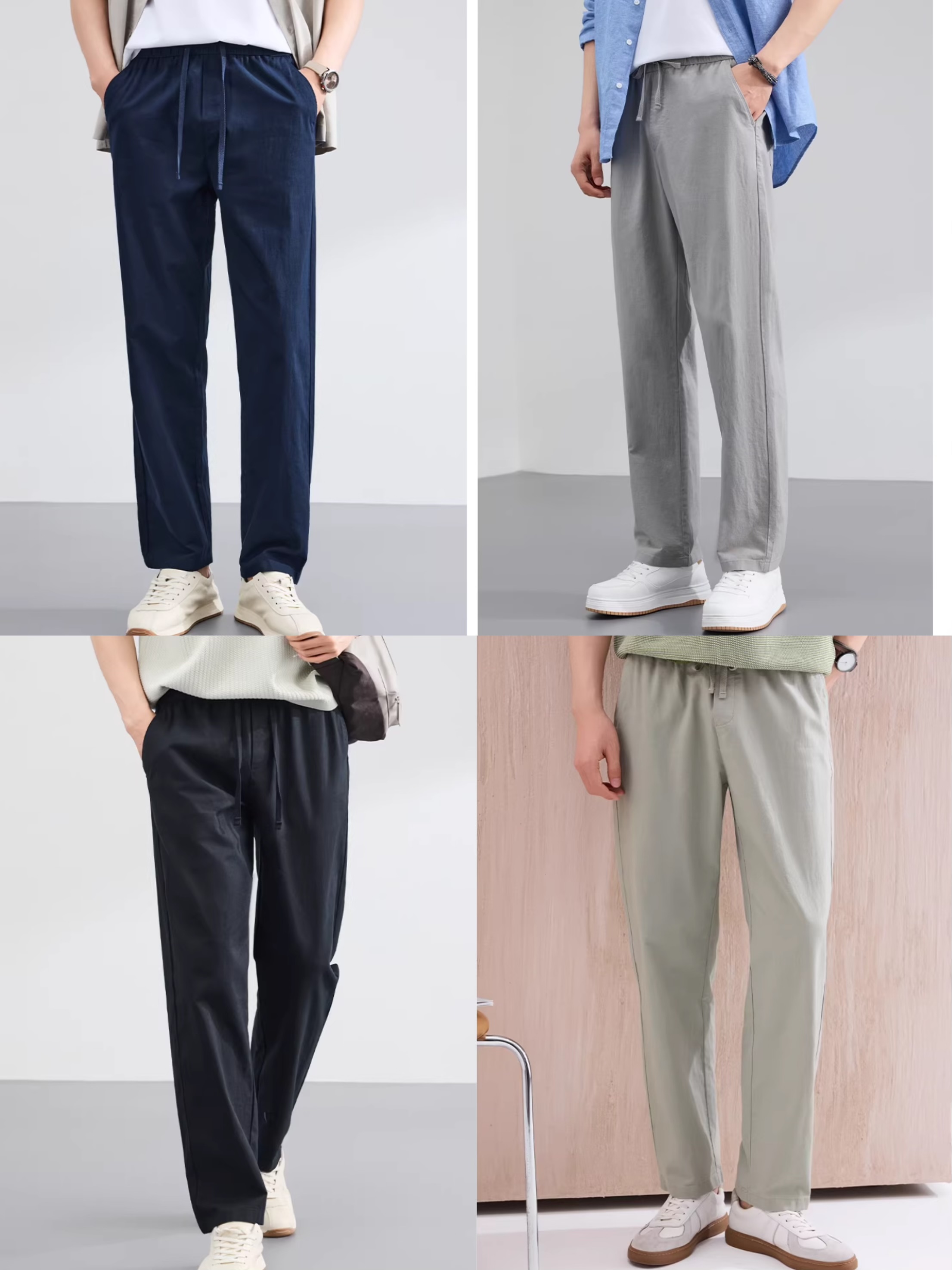 💰99元包邮,【2537】 会呼吸的面料!男士亚麻棉直筒休闲裤