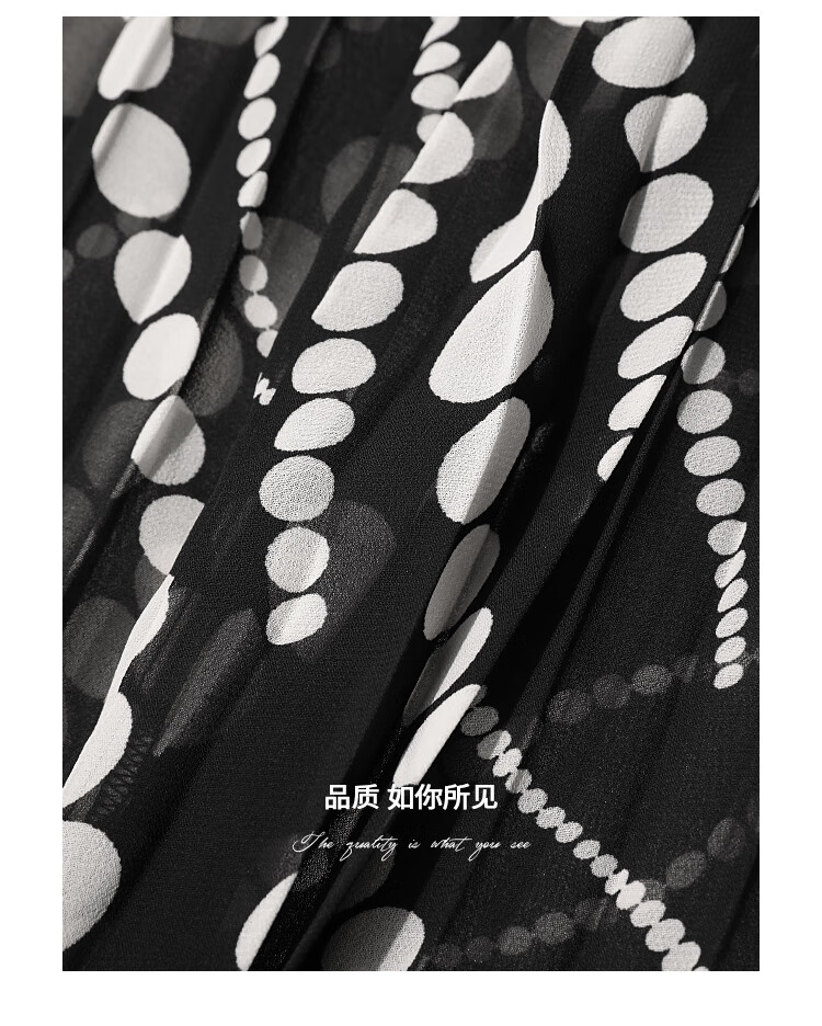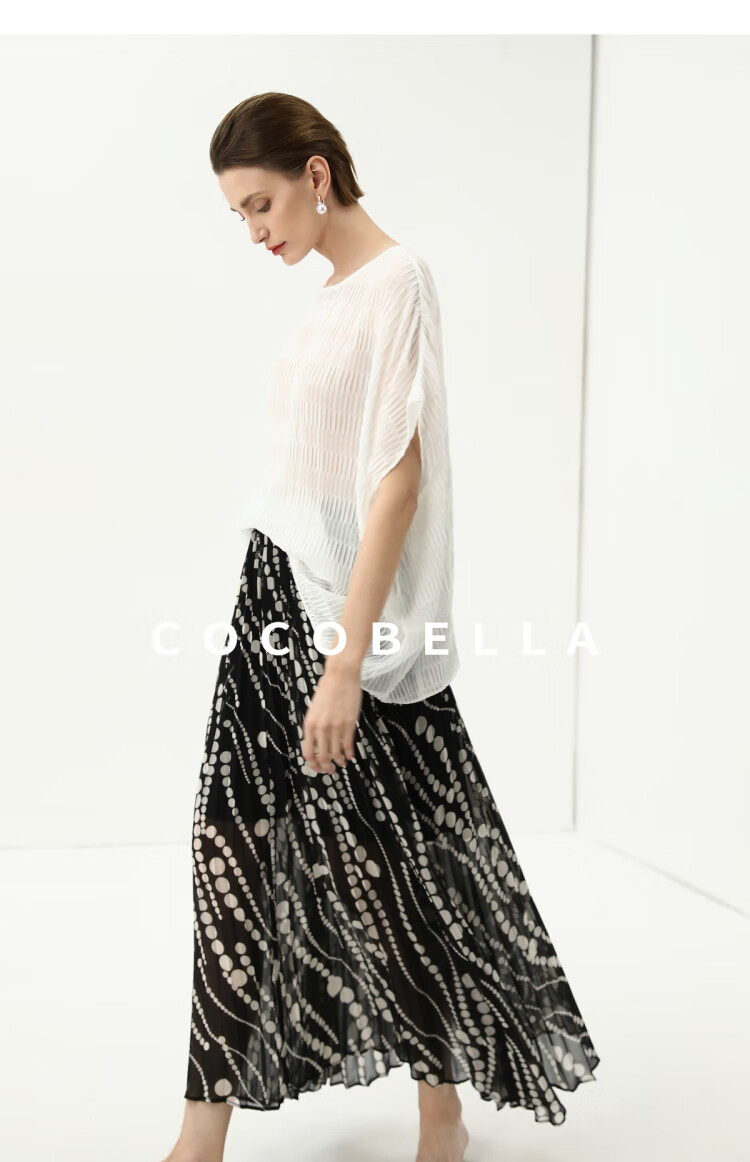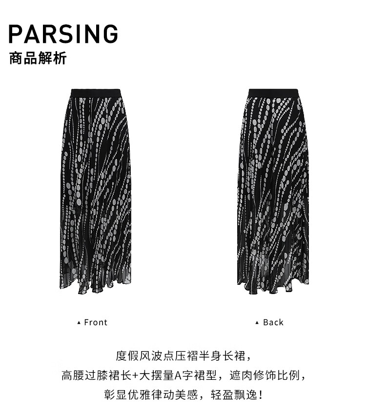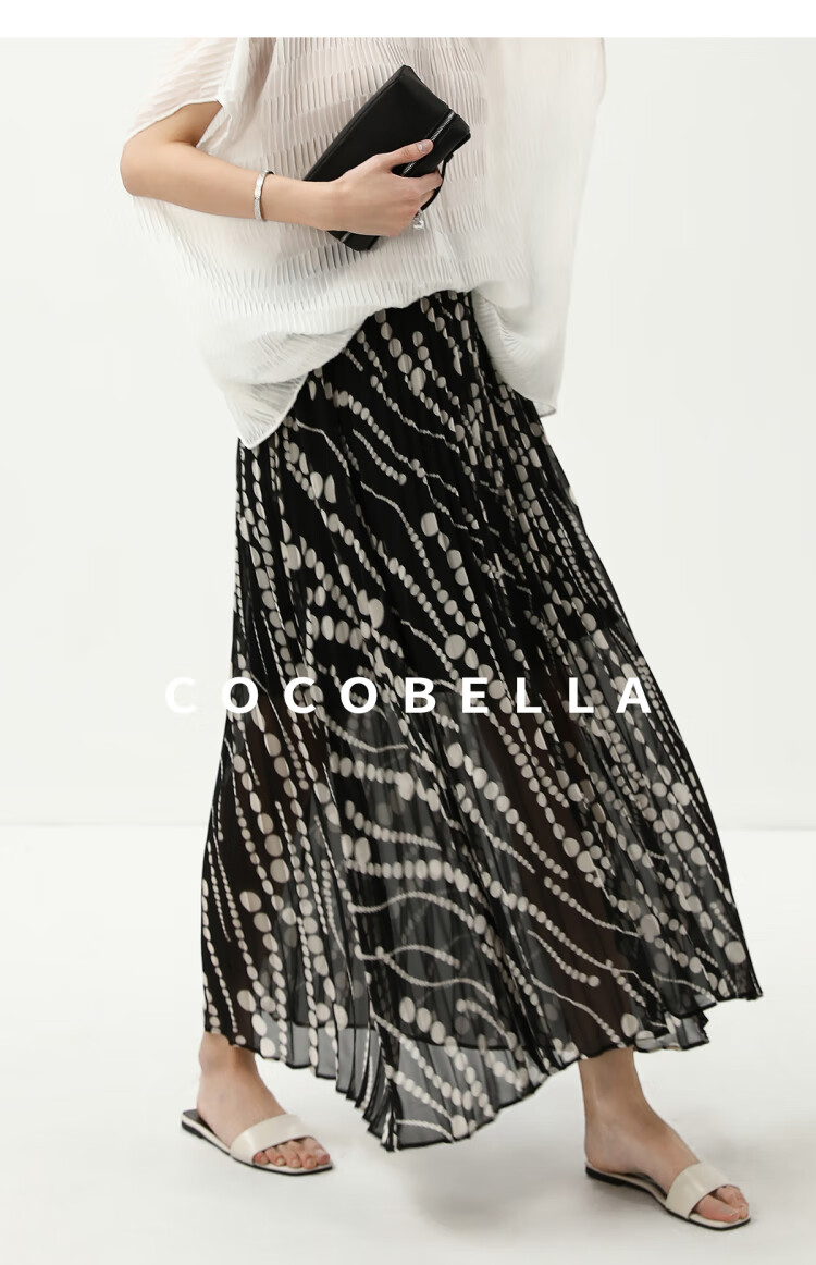 COCOBELLA度假风不规则下摆波点半身裙女飘逸百褶长裙HS7041