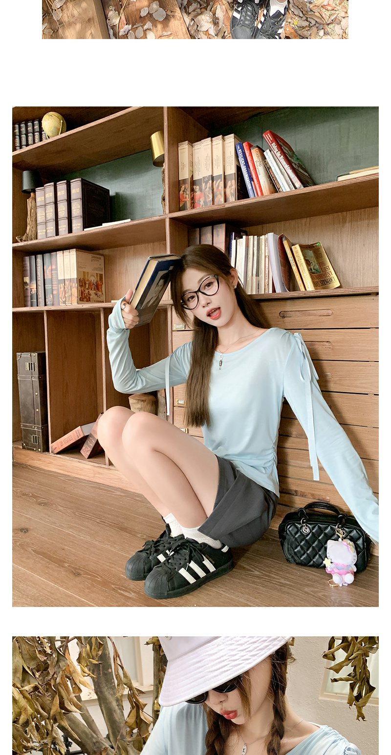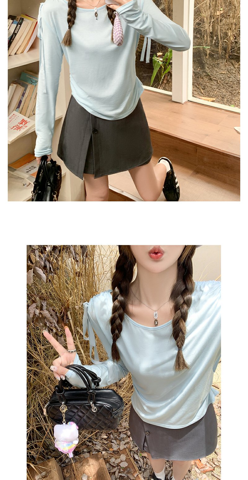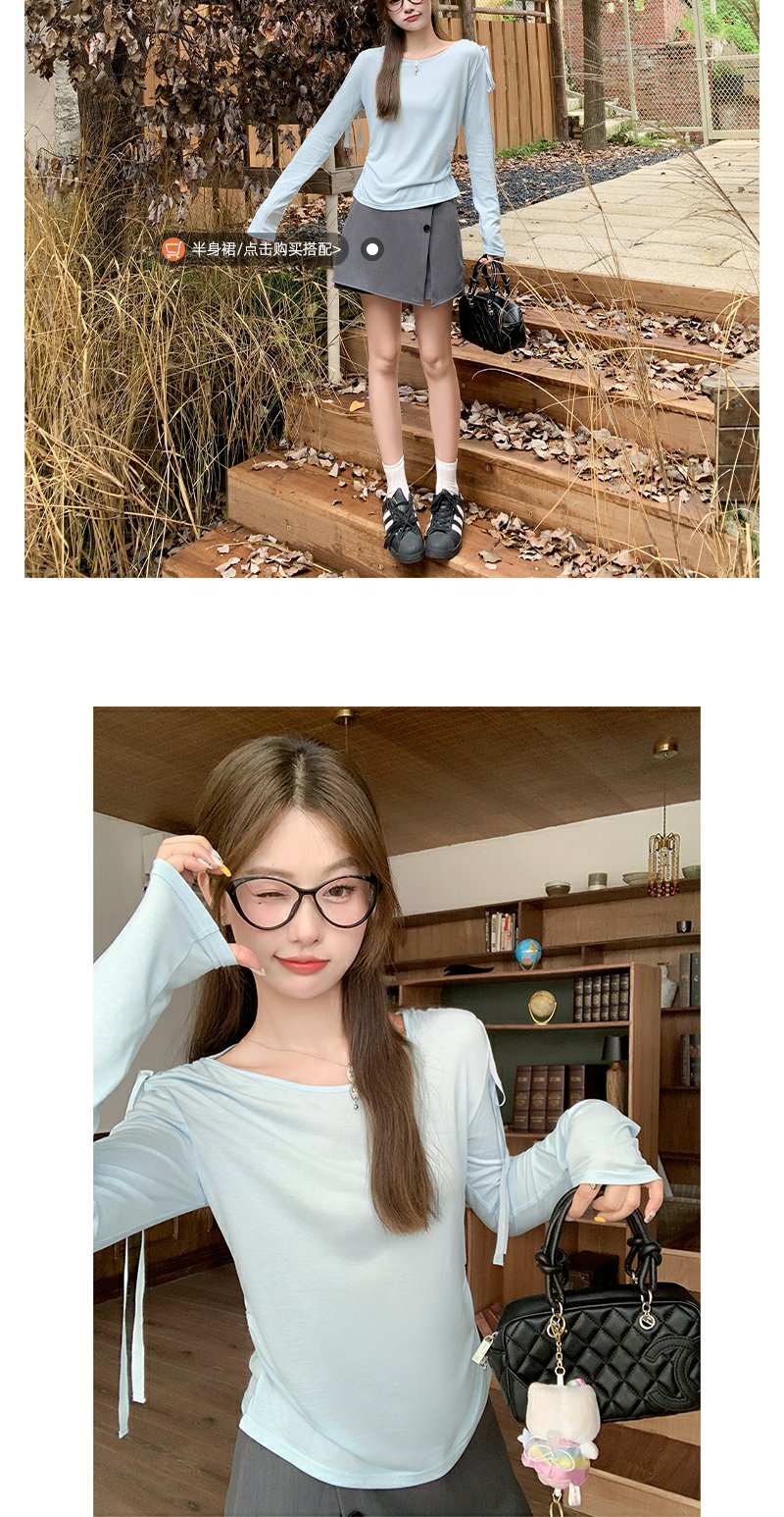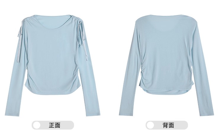 【110元任选2件】现货!抽绳绑带大领口长袖T恤女修身