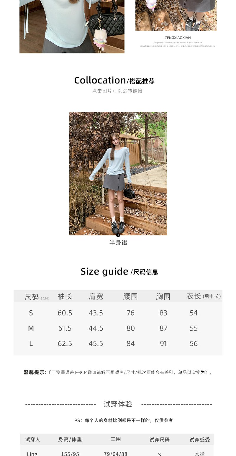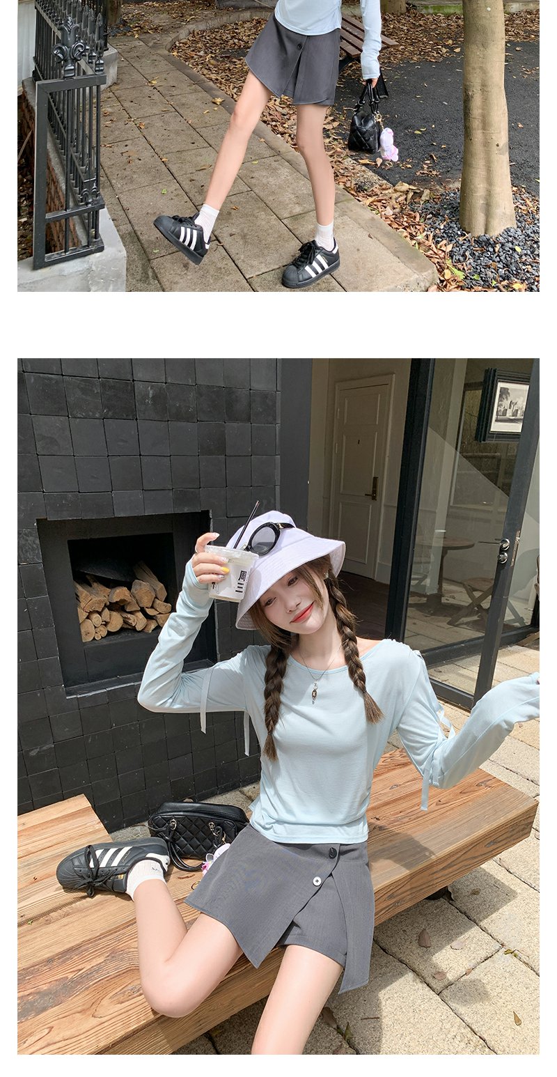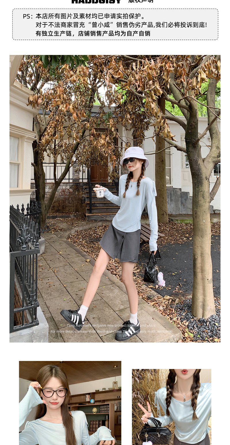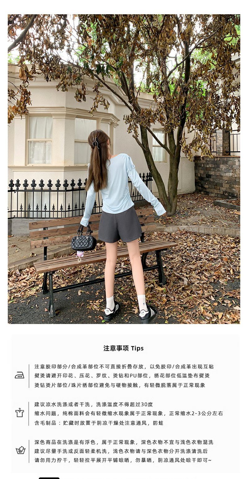 【110元任选2件】现货!抽绳绑带大领口长袖T恤女修身