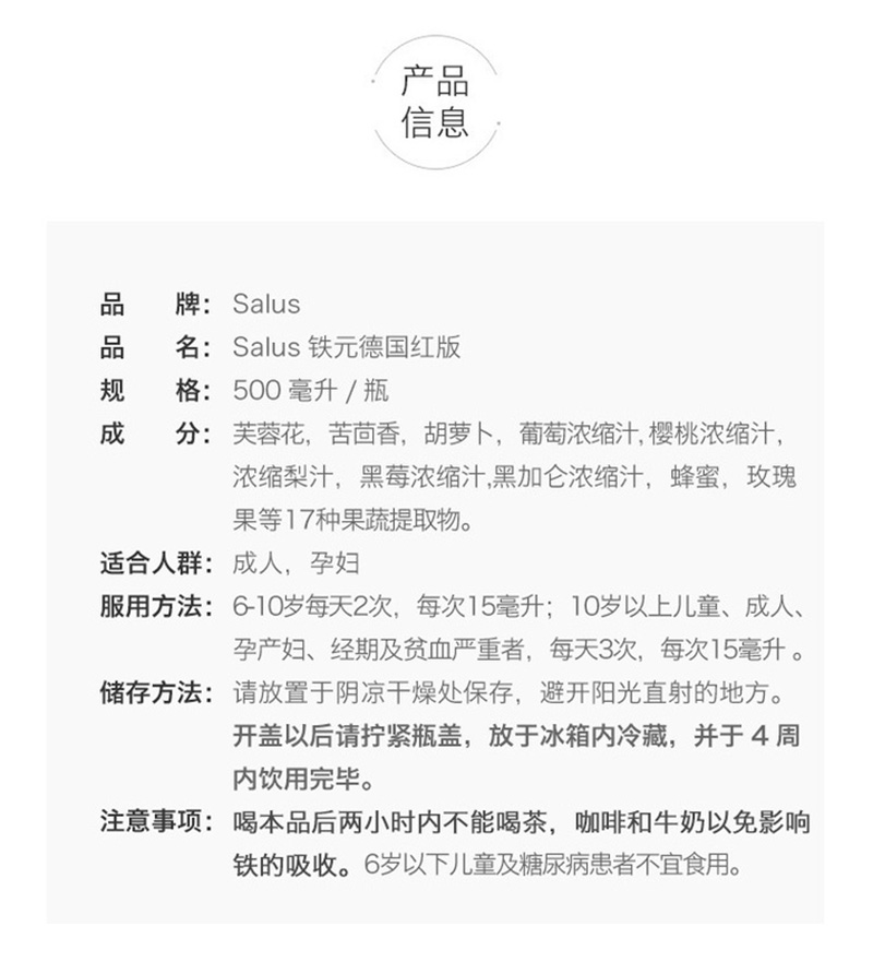 德国莎露斯 红铁营养液500ml