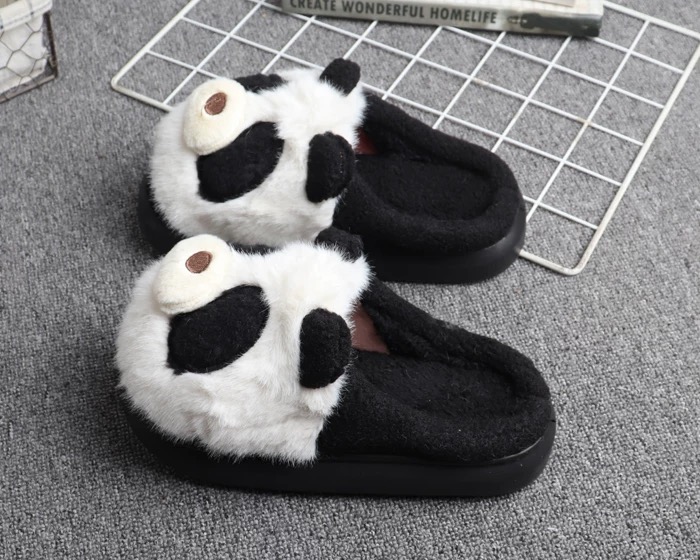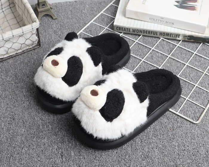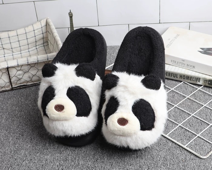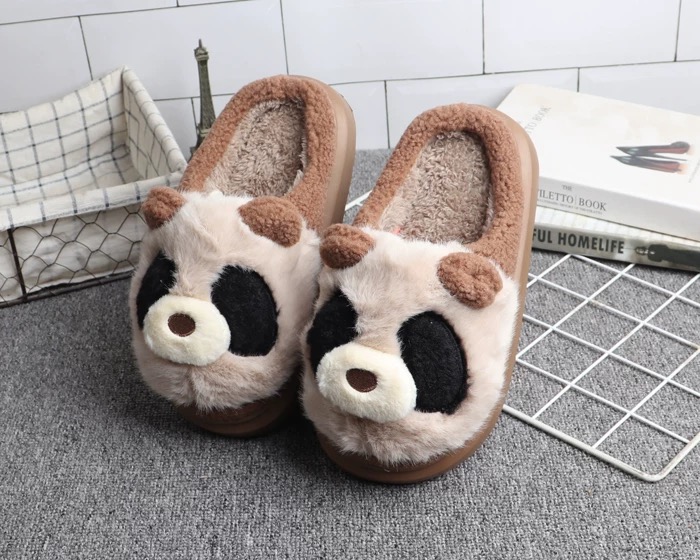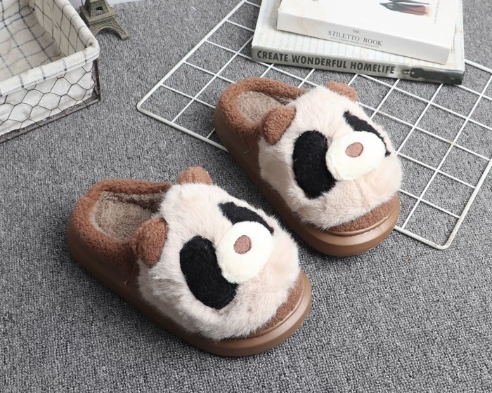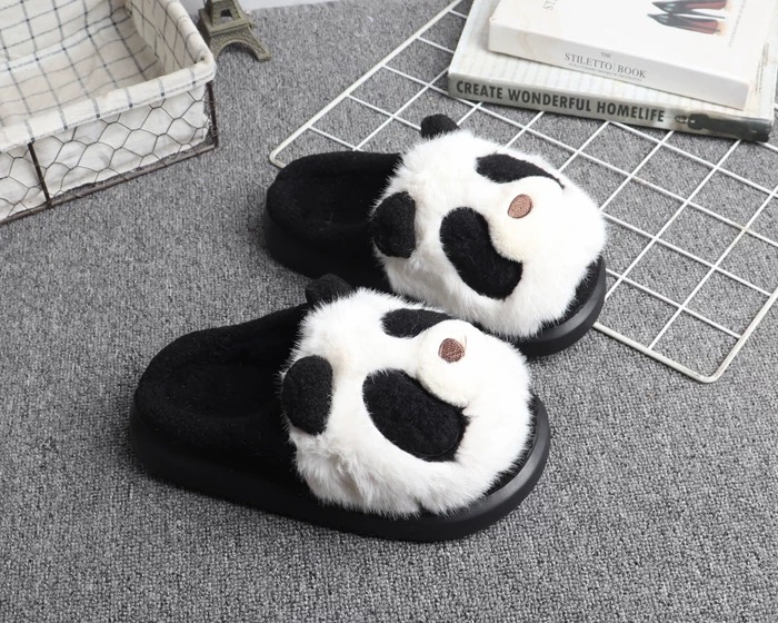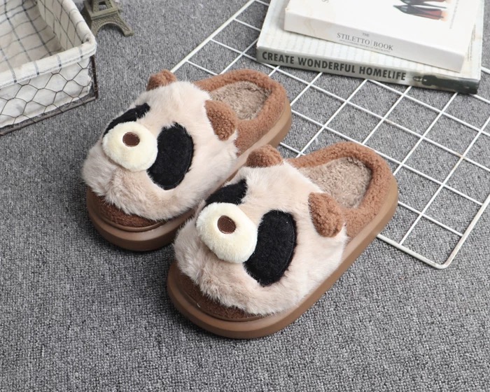 可爱小熊猫卡通冬季保暖棉拖鞋大童男女童毛绒鞋子棉拖【WG24106】