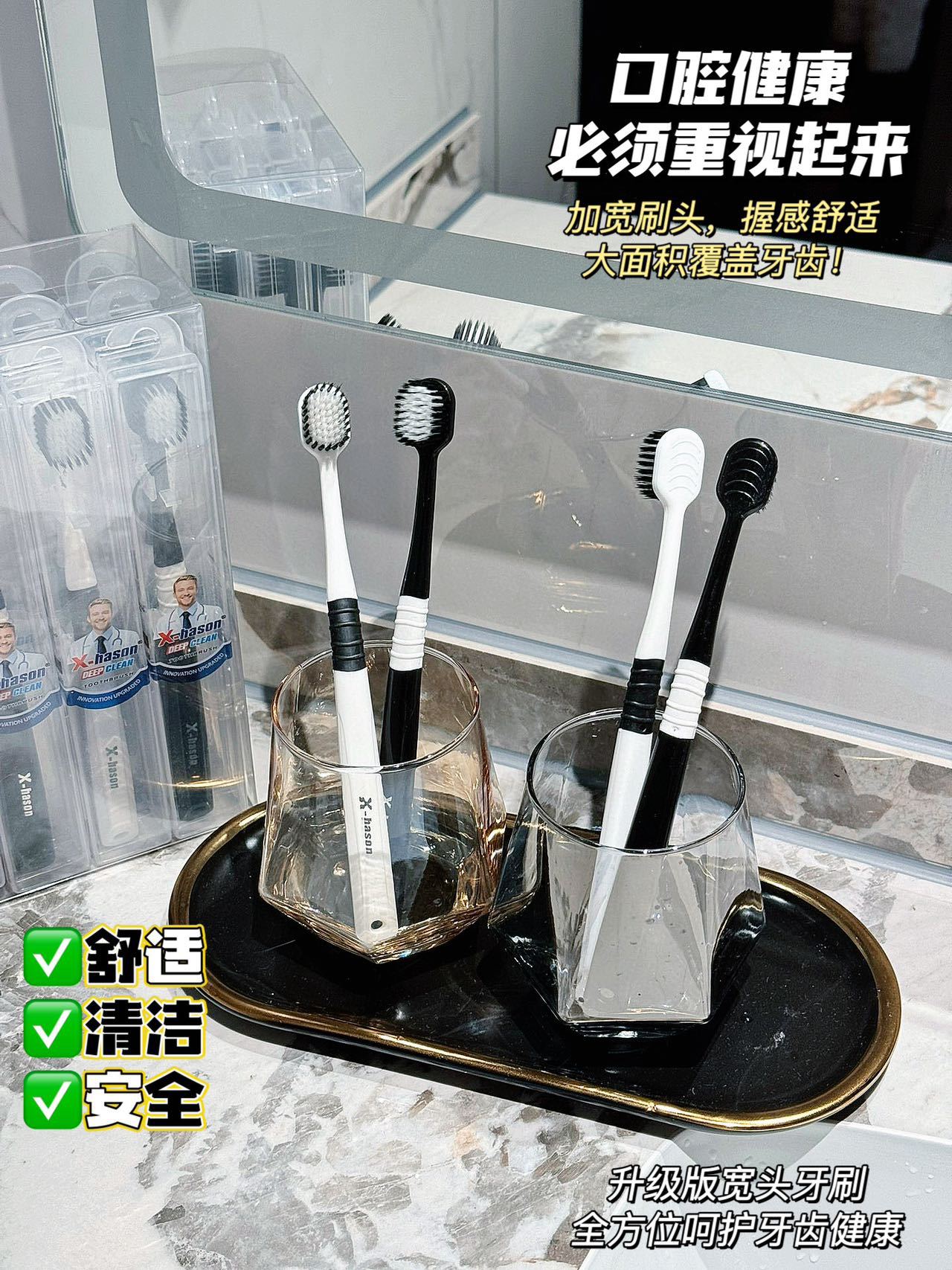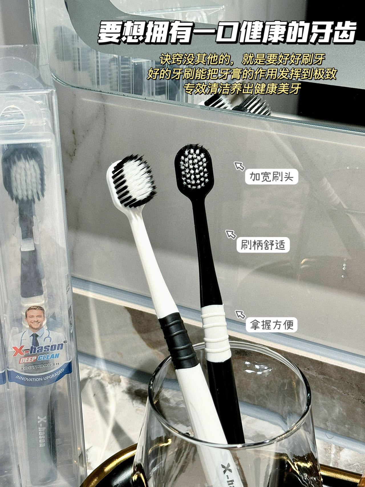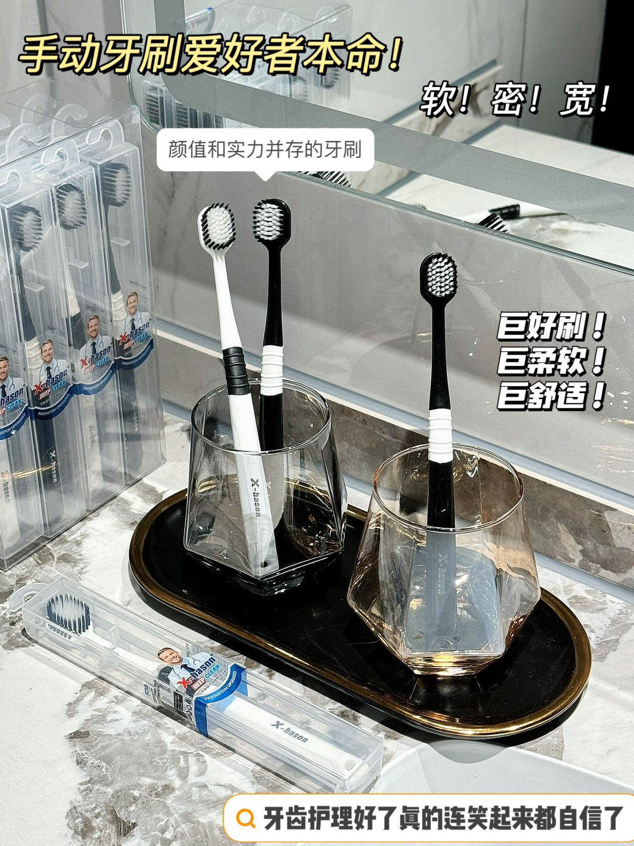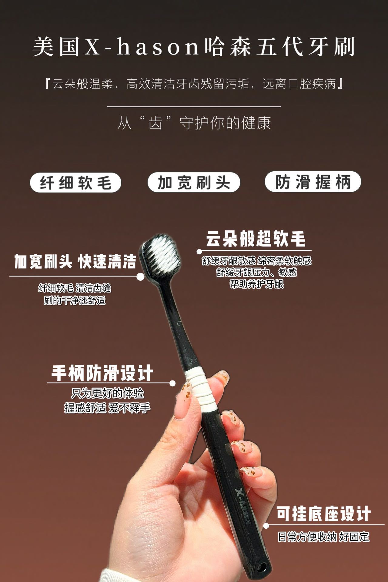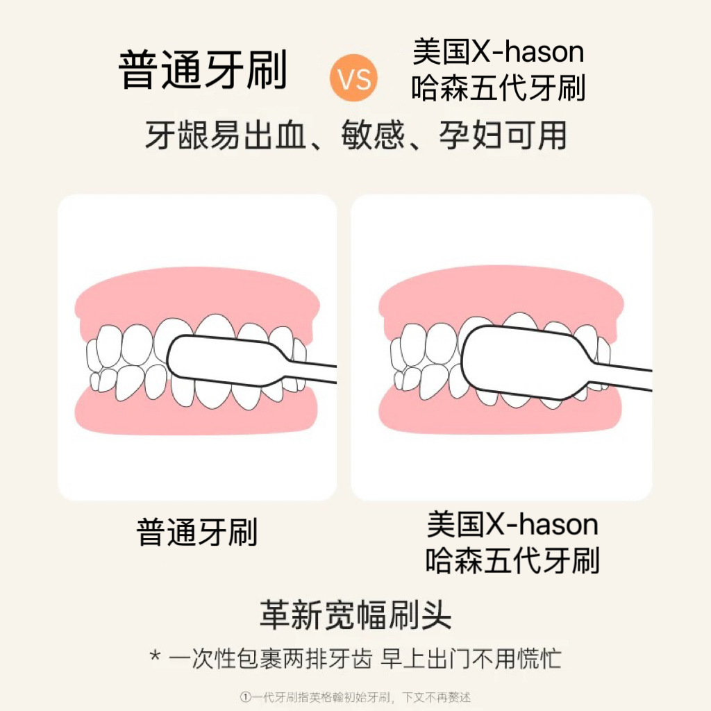「19.9到手5支」美国X-hason哈森五代牙刷 日式宽头软毛刮舌苔旅行装成人牙刷口腔护理