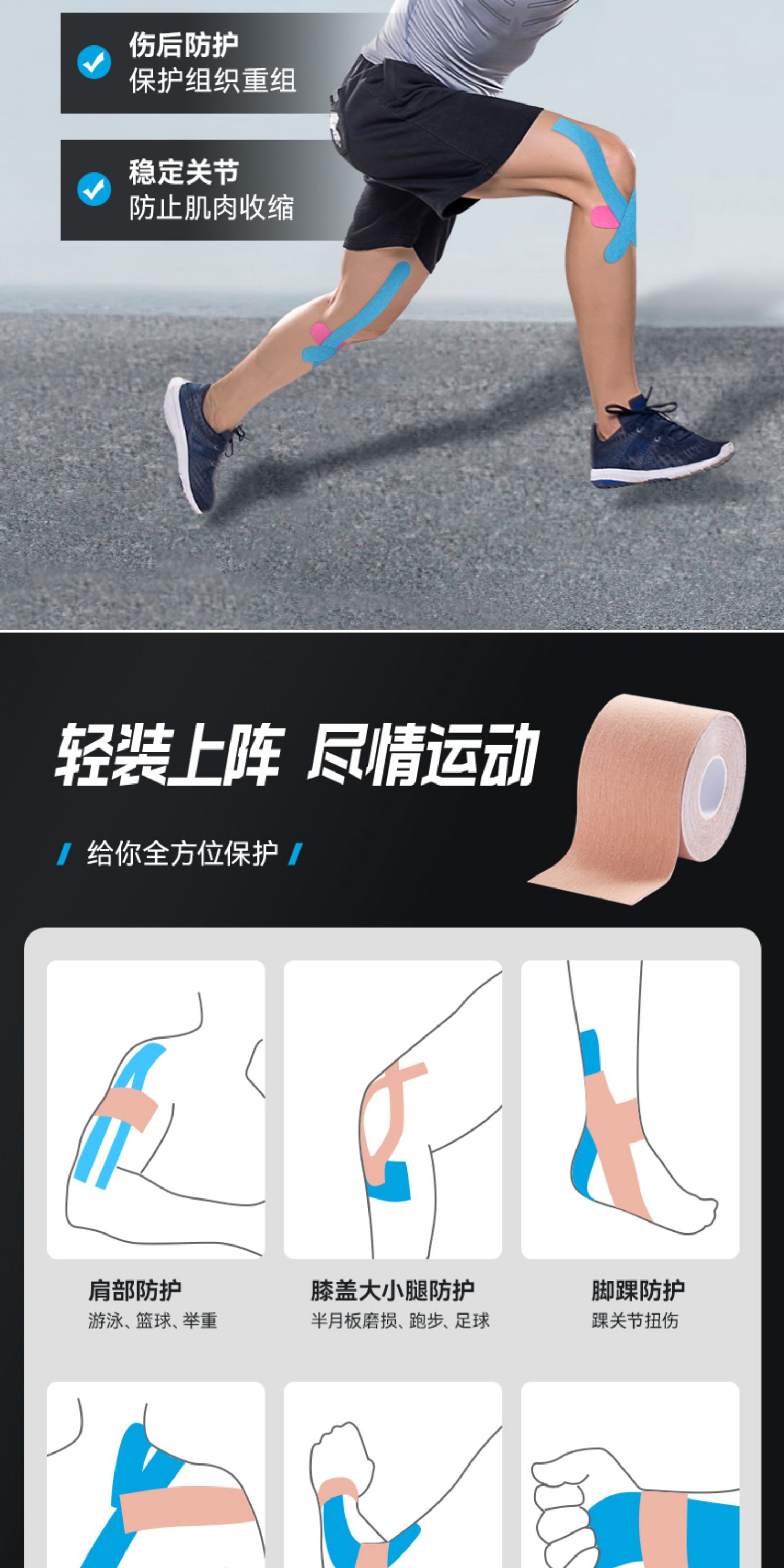 可孚运动员专用肌肉贴运动绷带胶带肌内效贴布肌力马拉松跑步膝盖