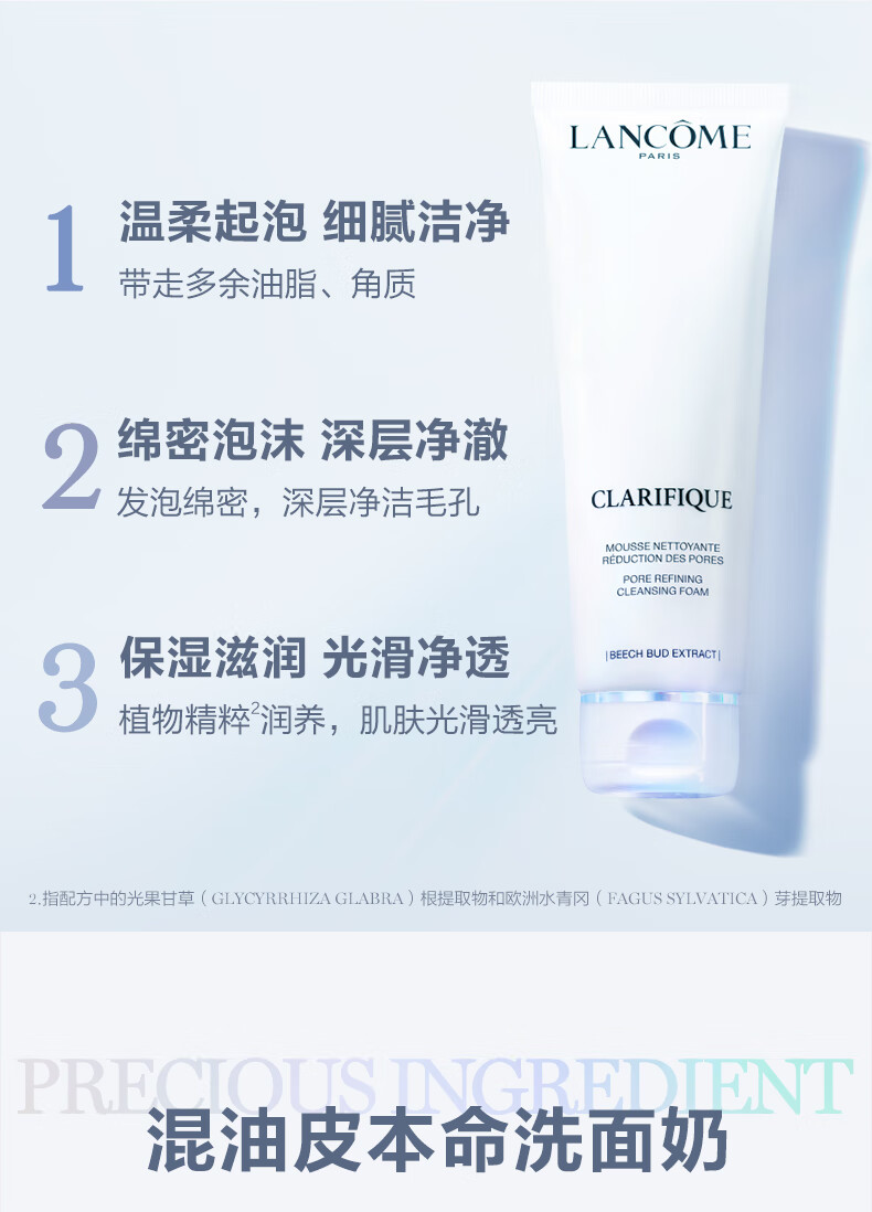 兰蔻 净澈焕肤极光洁面乳125ml 洗面奶男士女士柔和清洁护肤品