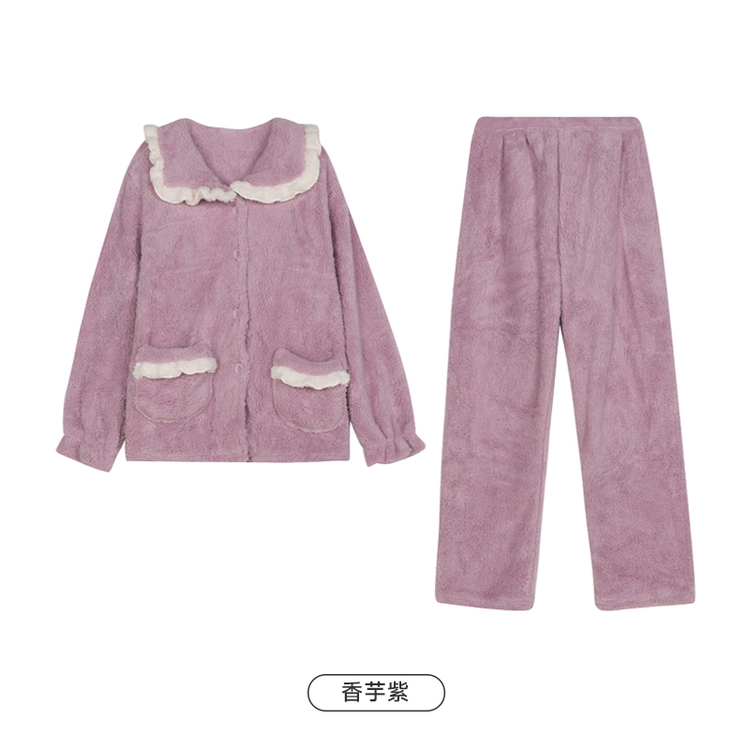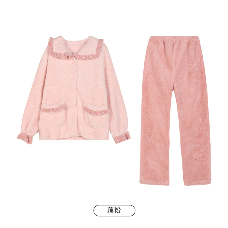 都市丽人睡衣女士长毛绒睡衣女士家居服长袖长裤法兰绒套装LHH1Q2