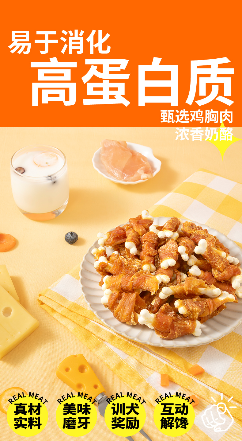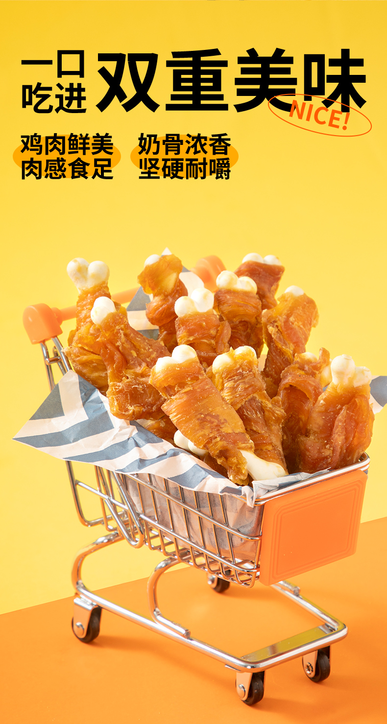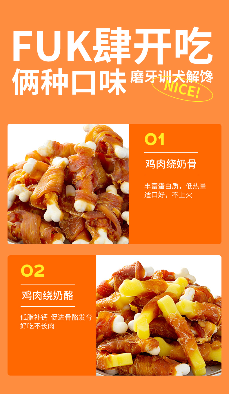 | 食品口味: 无添加鸡肉绕奶酪【洁齿靓毛】 无添加鸡肉绕奶骨【磨牙补钙】 | 适用对象: 通用 |