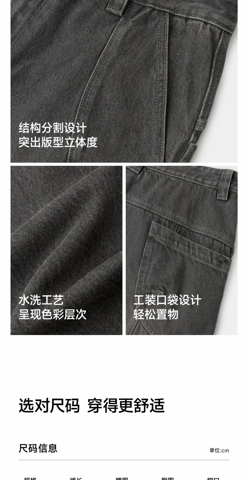 【商场同款】CHINISM赤尘 水洗灰工装牛仔裤男春季新款男士直筒裤