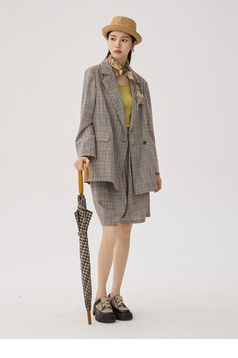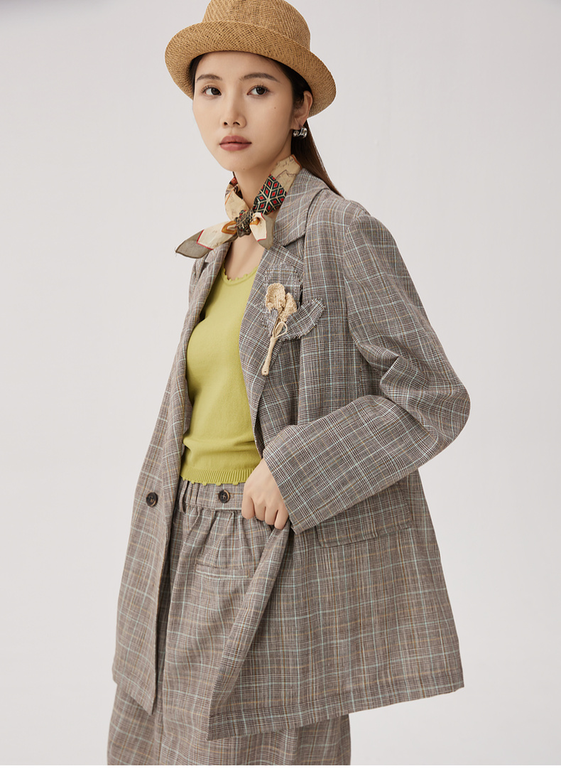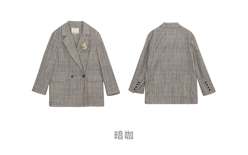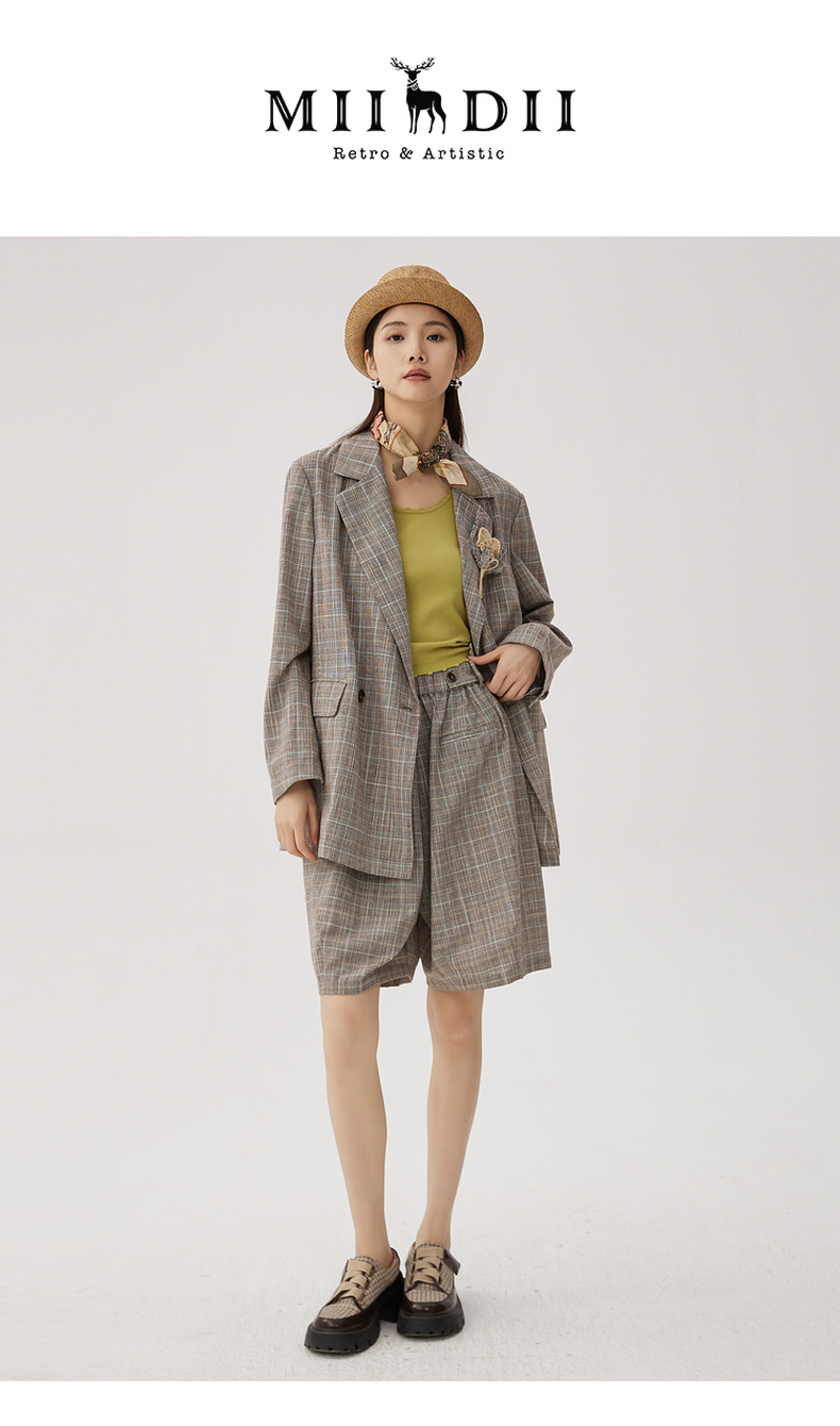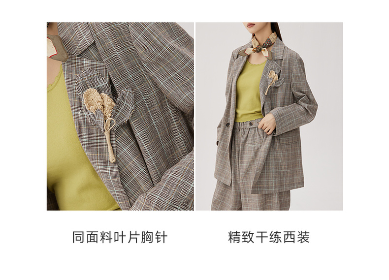 谜底格子西装外套女2024秋季新品松弛感宽松中长款西服243MW1126