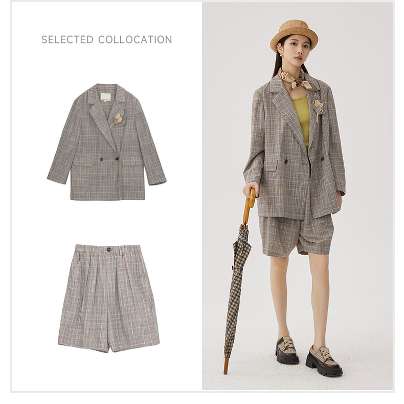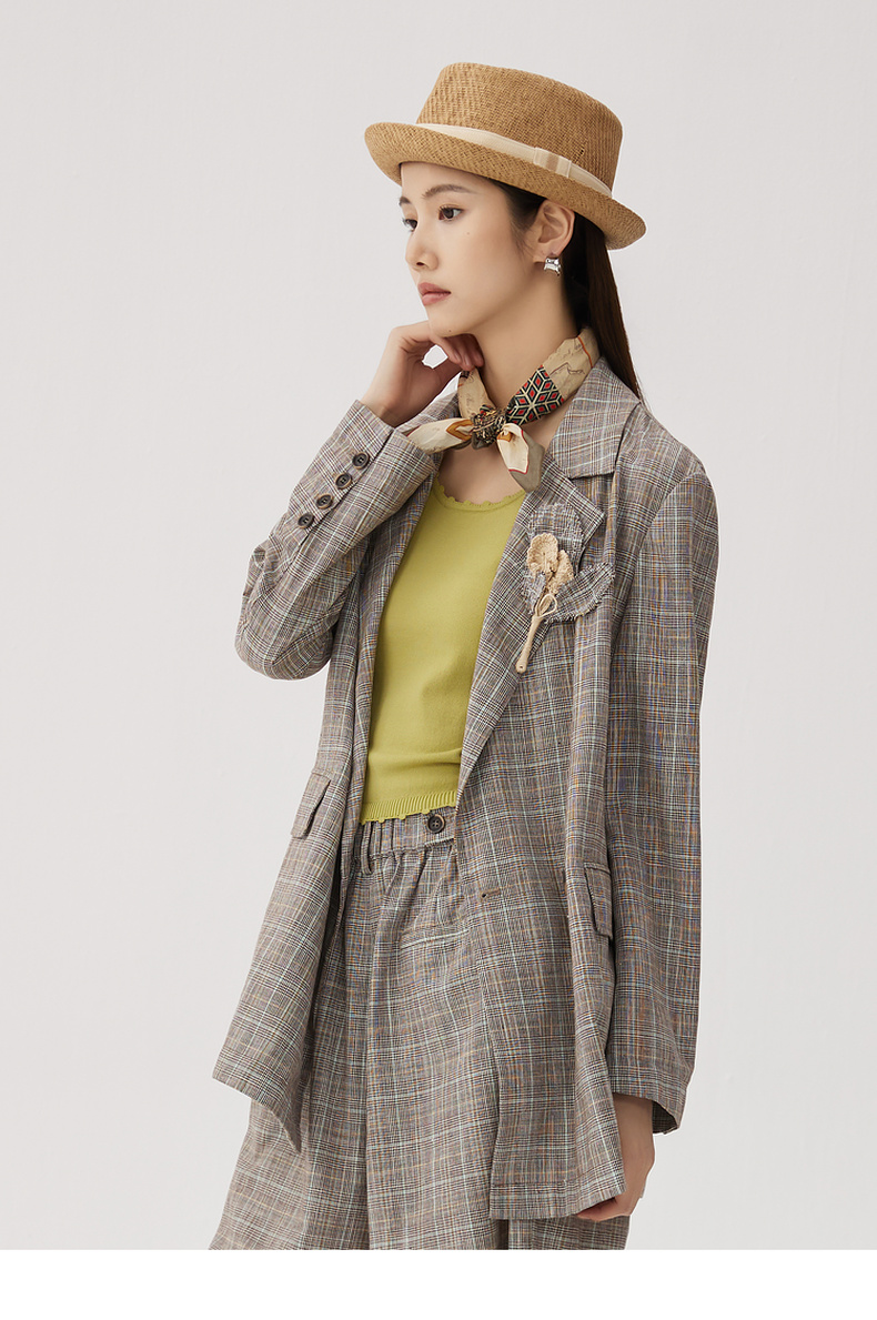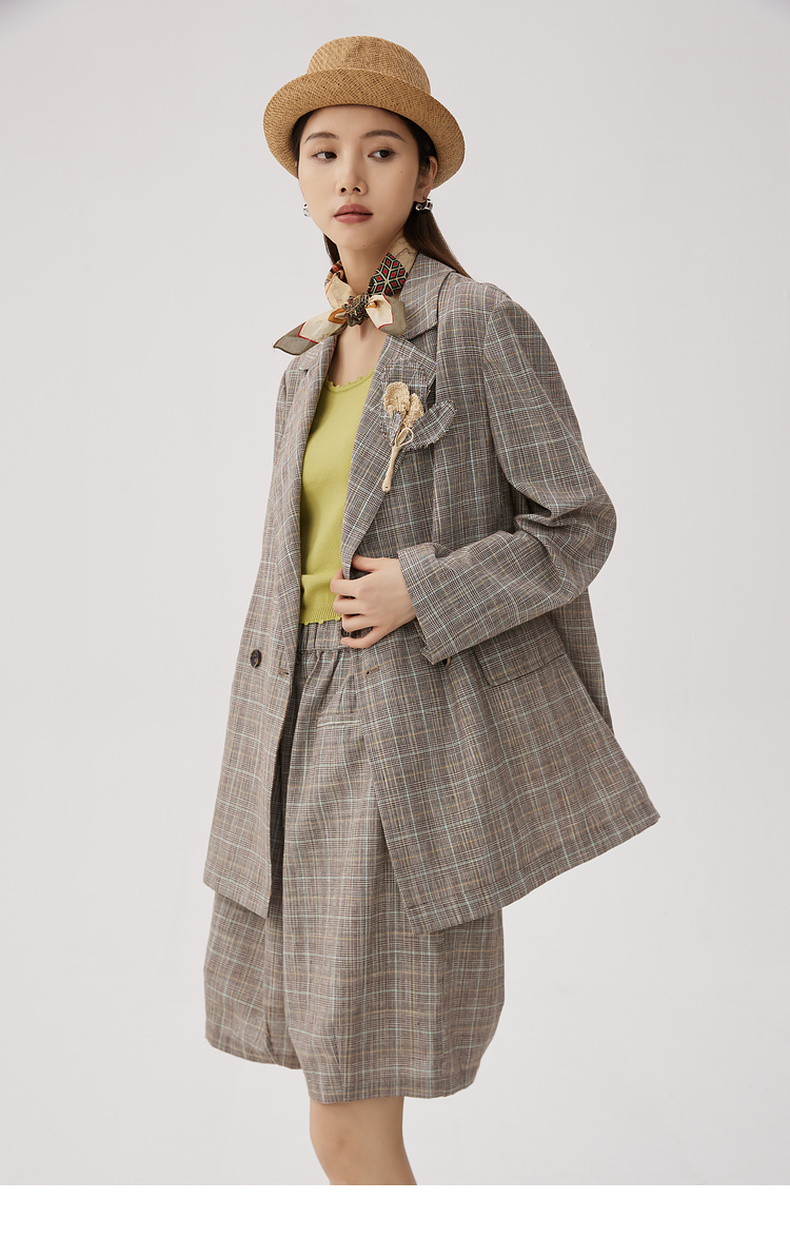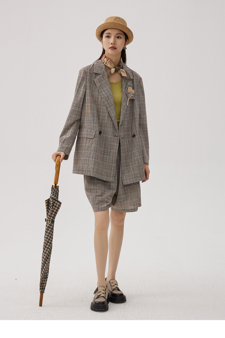 谜底格子西装外套女2024秋季新品松弛感宽松中长款西服243MW1126