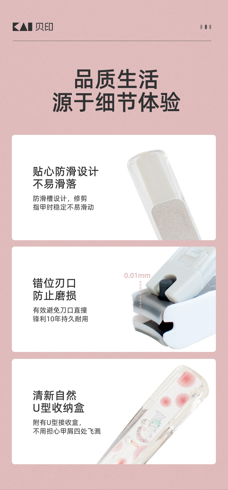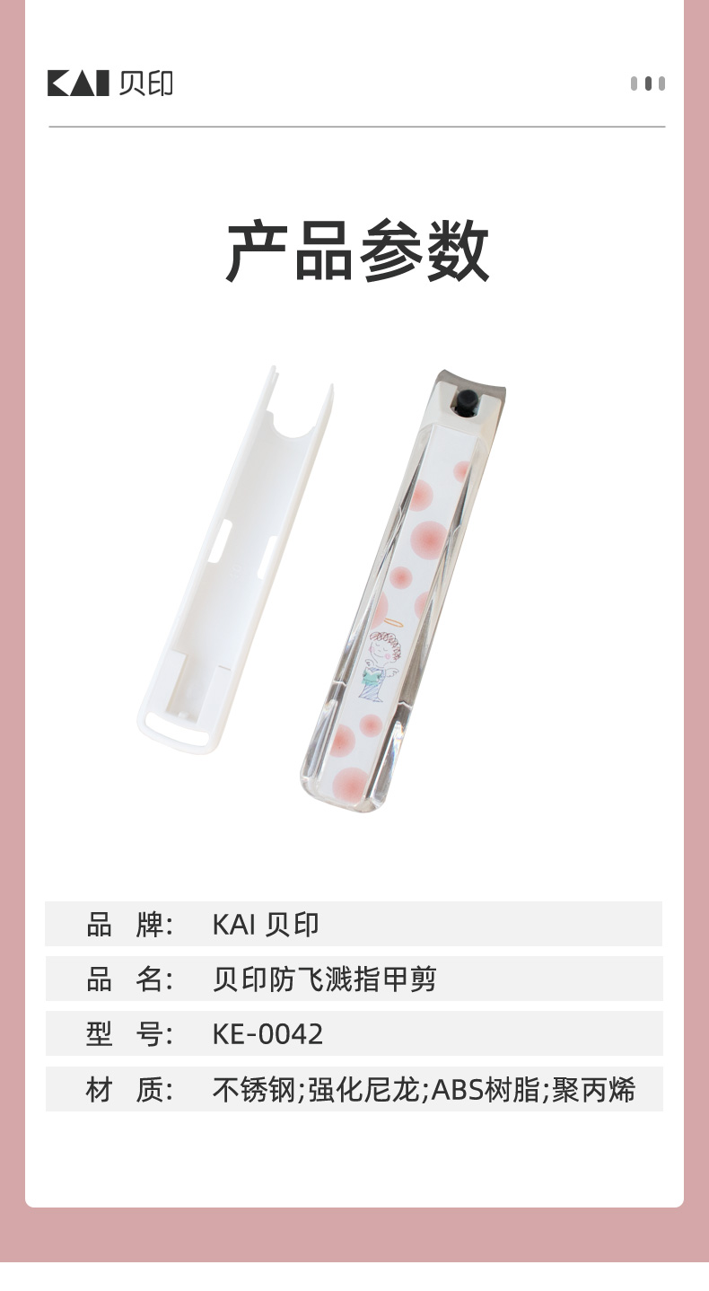 贝印防飞溅指甲剪KE-0042 锋利不锈钢指甲刀指甲钳