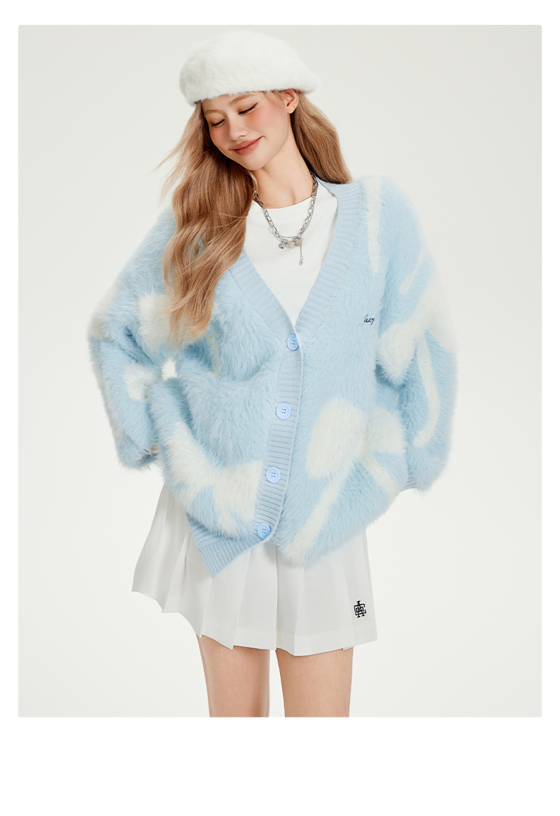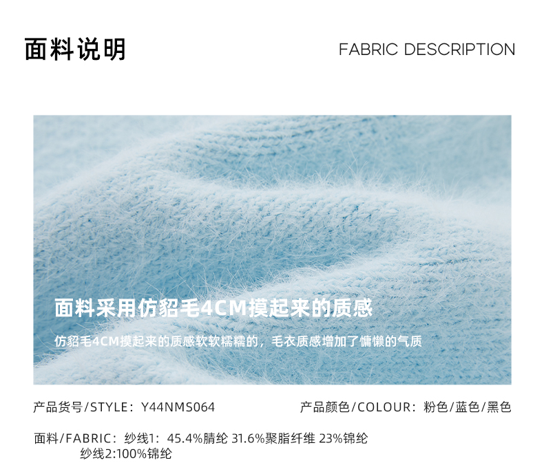 [下单送打底衫]YKYB仿貂毛绣花蝴蝶趣味感双色慵懒针织衫毛衣