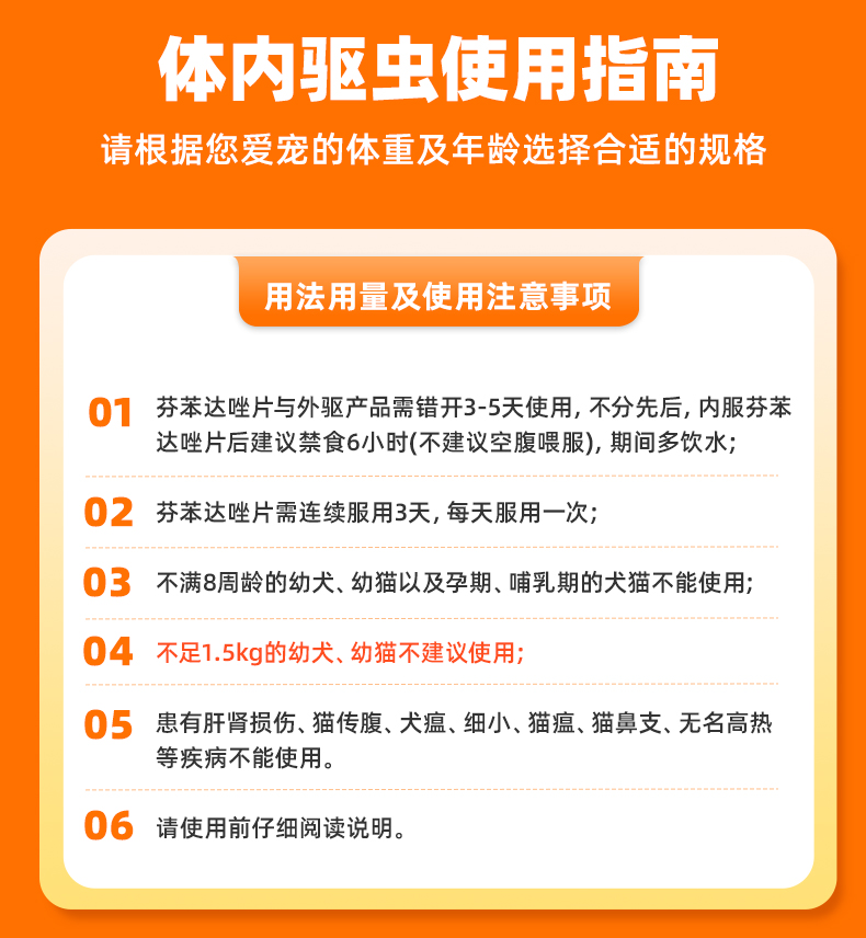 注:产品更新换代为芬苯达唑片,以下用法非阿苯达唑片用法,如需用法