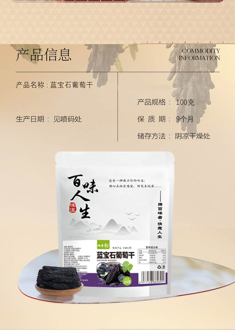 【九九年】蓝宝石葡萄干优质大果天然玫瑰香无添加100*5包
