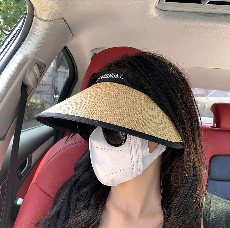 「9.9到手!3色可选」空顶uv防晒帽女夏防紫外线大帽檐沙滩遮阳草帽骑车遮脸太阳帽配饰