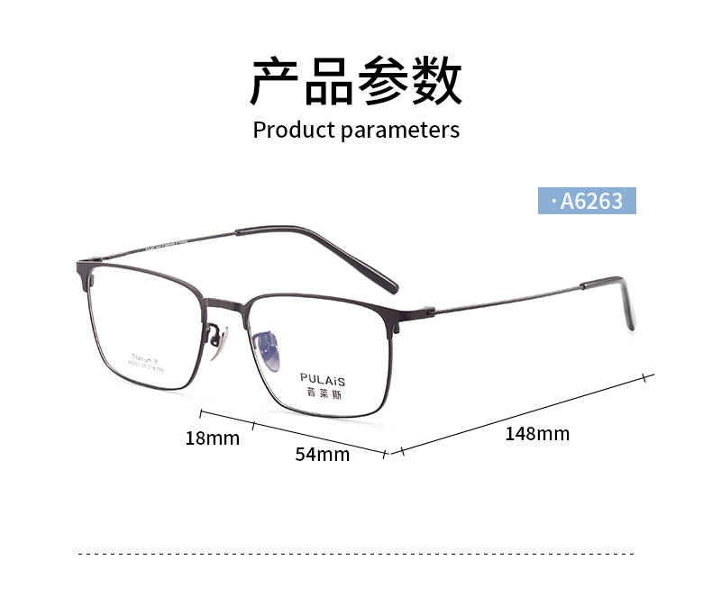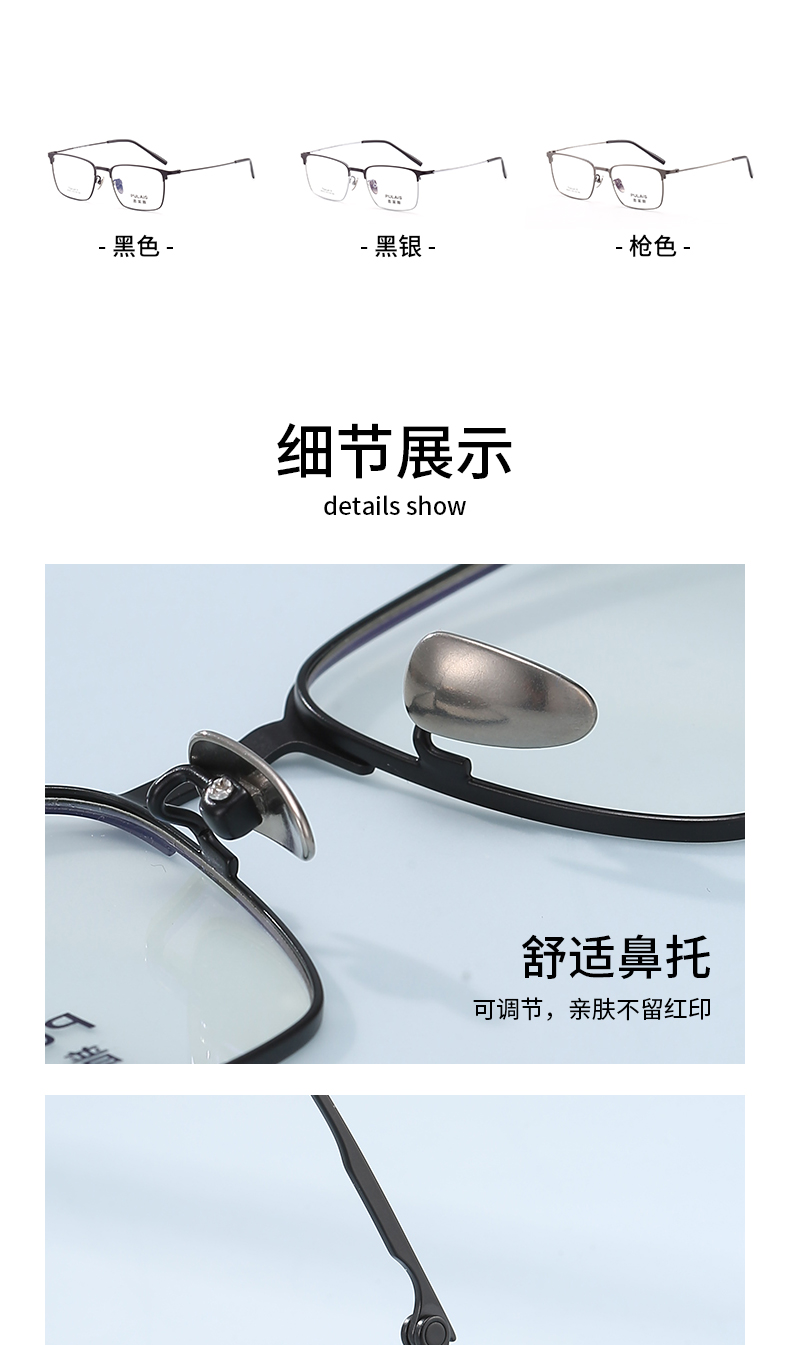 普莱斯光学镜框A6263 经典全框 半钛材质 舒适鼻托 稳固桩头 商务休闲 三色可选