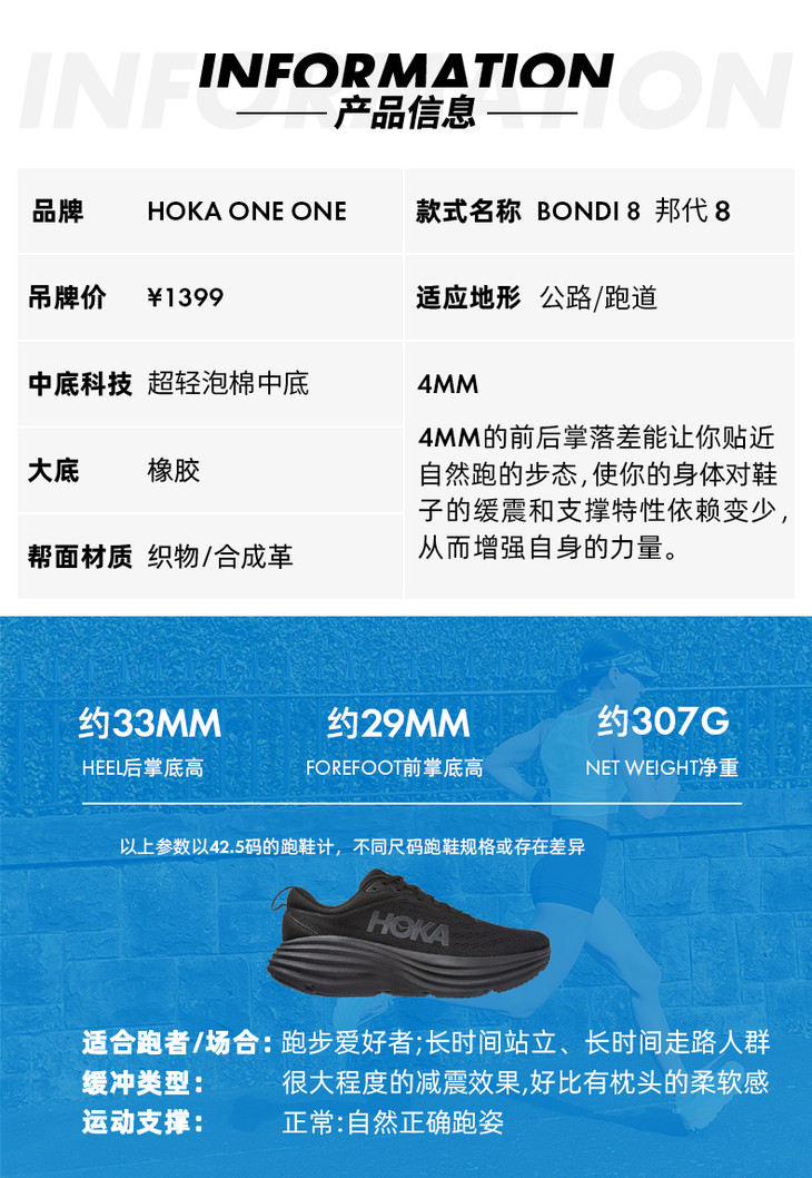 【双旦特惠:奥莱特卖场】HOKA ONE ONE 男女邦代8公路跑鞋Bondi 8减震回弹舒适透气轻便跑鞋