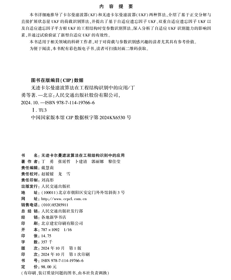 书名:无迹卡尔曼滤波算法在工程结构识别中的应用