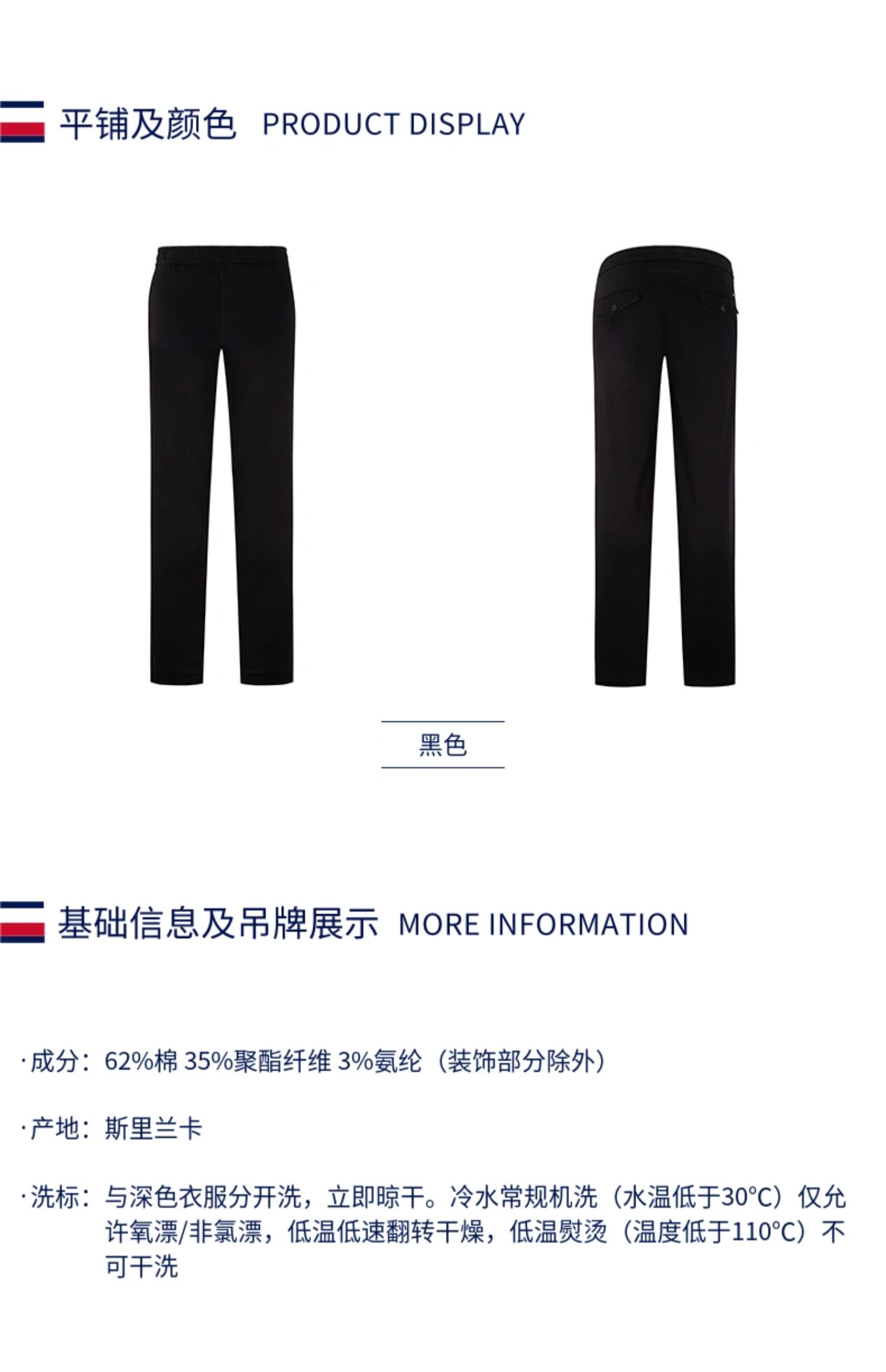 【特价商品不退不换】TOMMY 男休闲裤 MW29096-BDS .62%COTTON 35%REPROCESSED POLYSTYRENE 3%ELASTANE