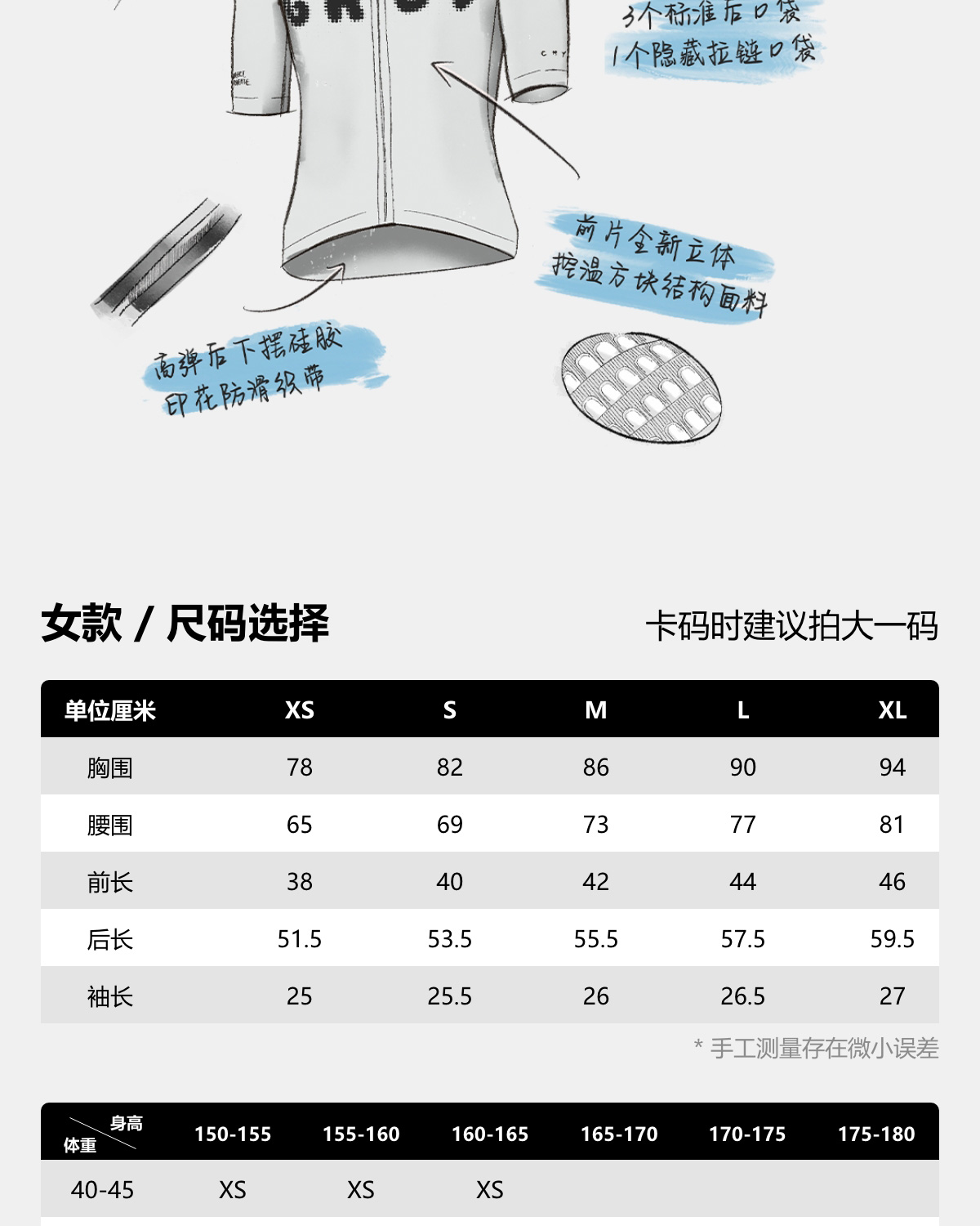 GRC桀骜无尽春夏新款cmyk系列控温方块女士短袖公路自行车骑行服