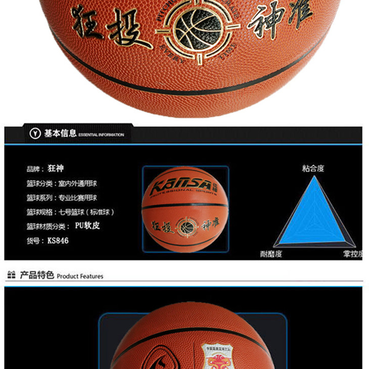 狂神篮球 耐磨PU七号篮球训练比赛专用ks846